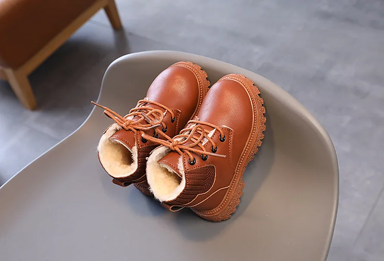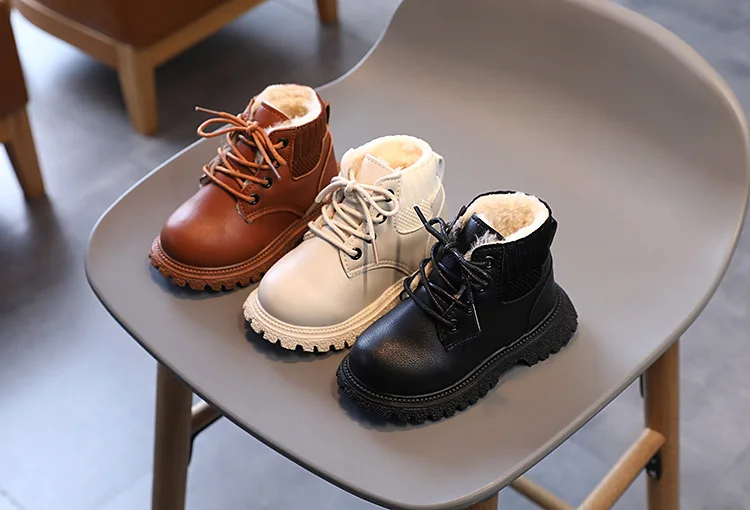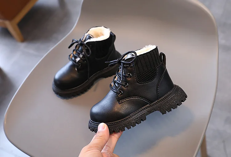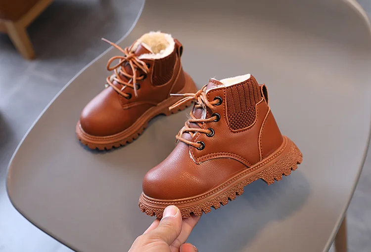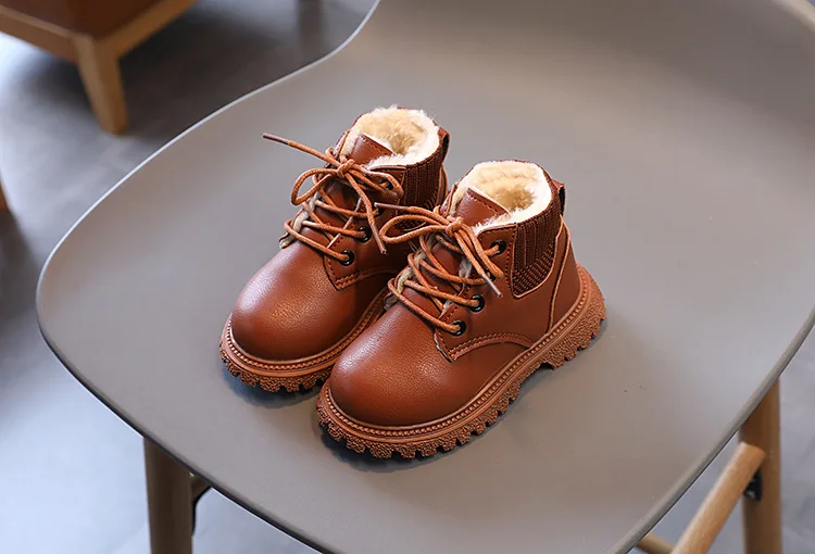 Ботинки-мартинсы детские, Осень-зима 2020, из кожи и хлопка