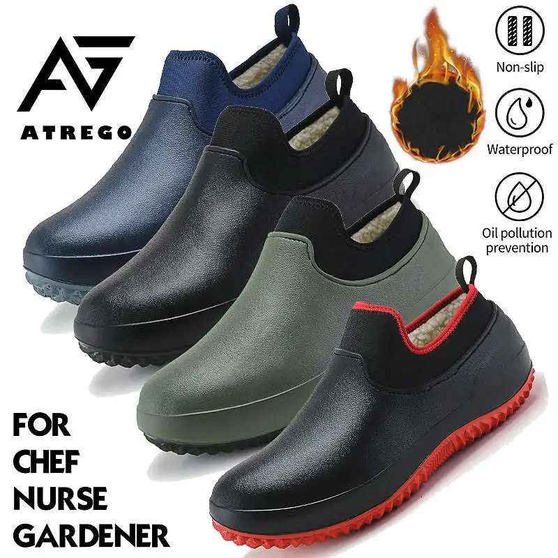 Обувь для шеф-повара AtreGo, непромокаемая, маслостойкая, нескользящая, зимняя, плюшевая, теплая, большого размера, для мужчин и женщин, эластичная резиновая