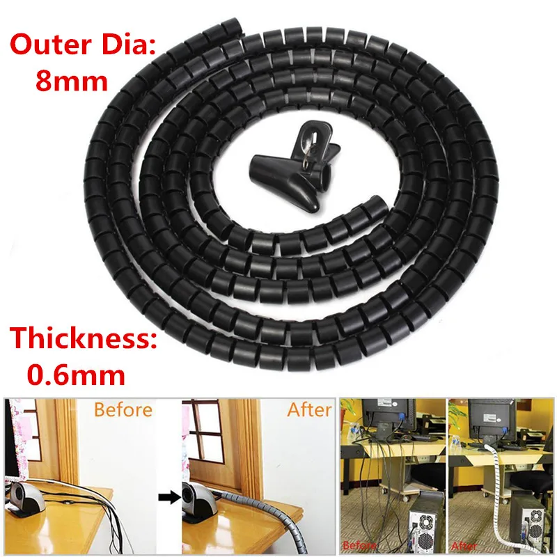 Эта спиральная оберточная лента идеально подходит для организации и защиты проводки и кабелей.