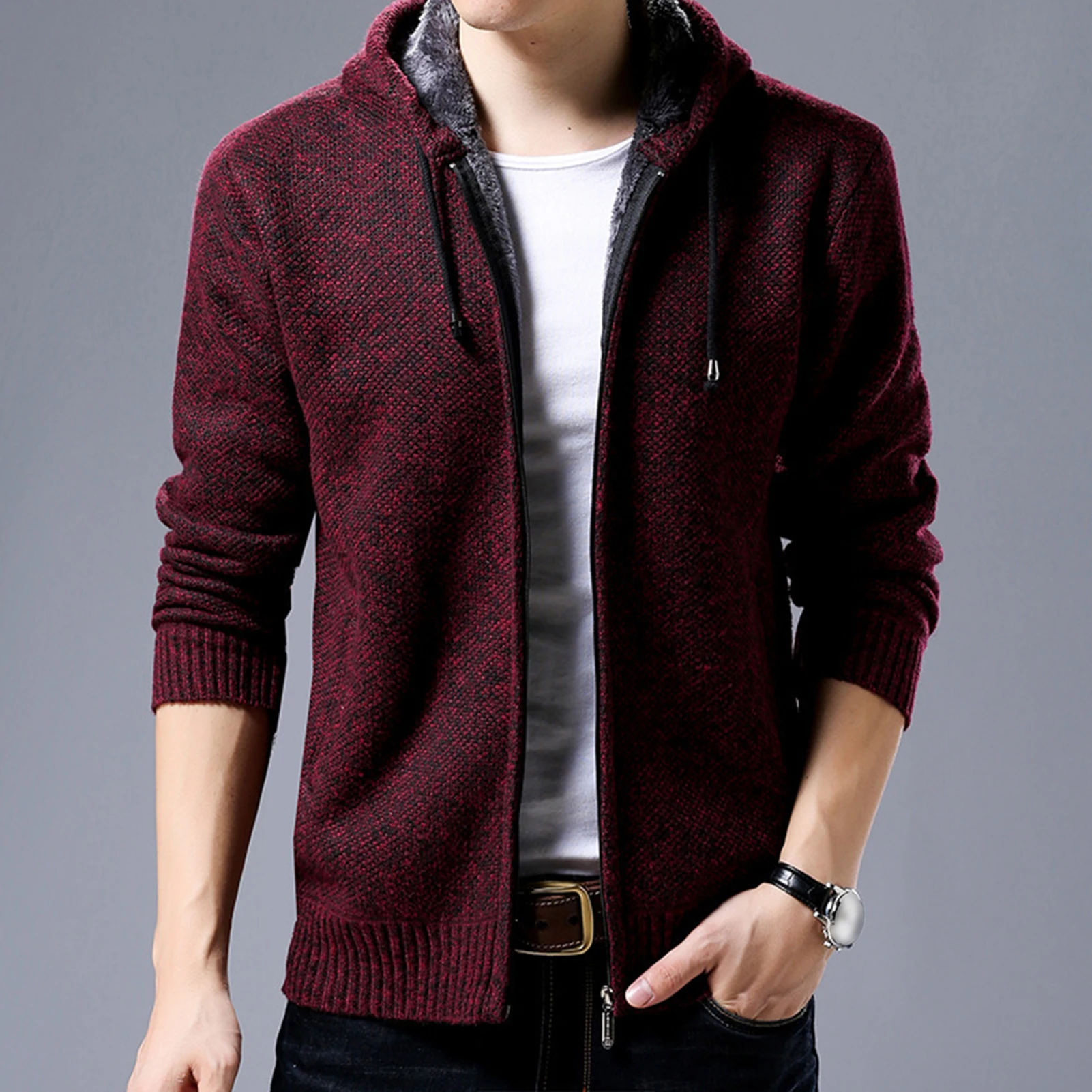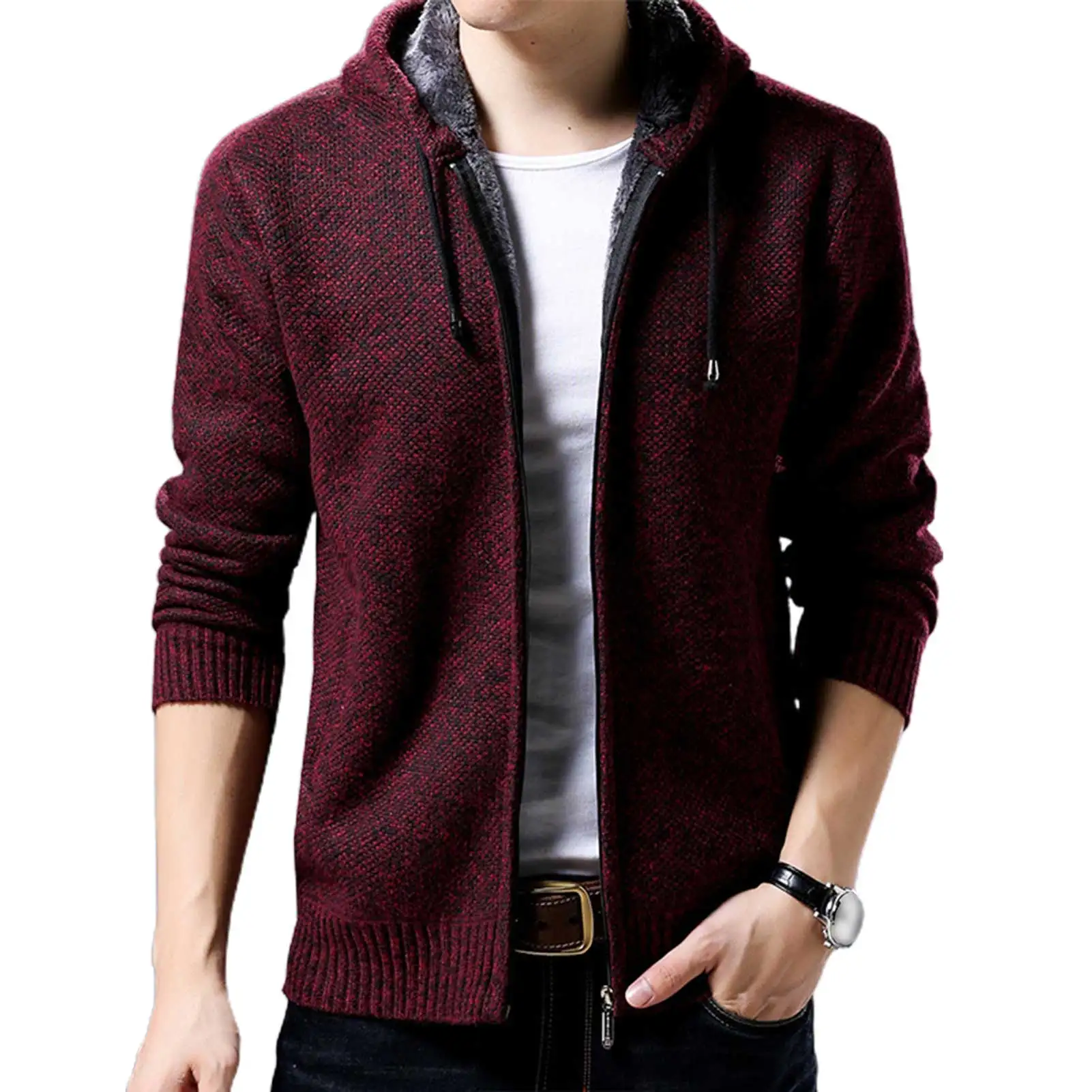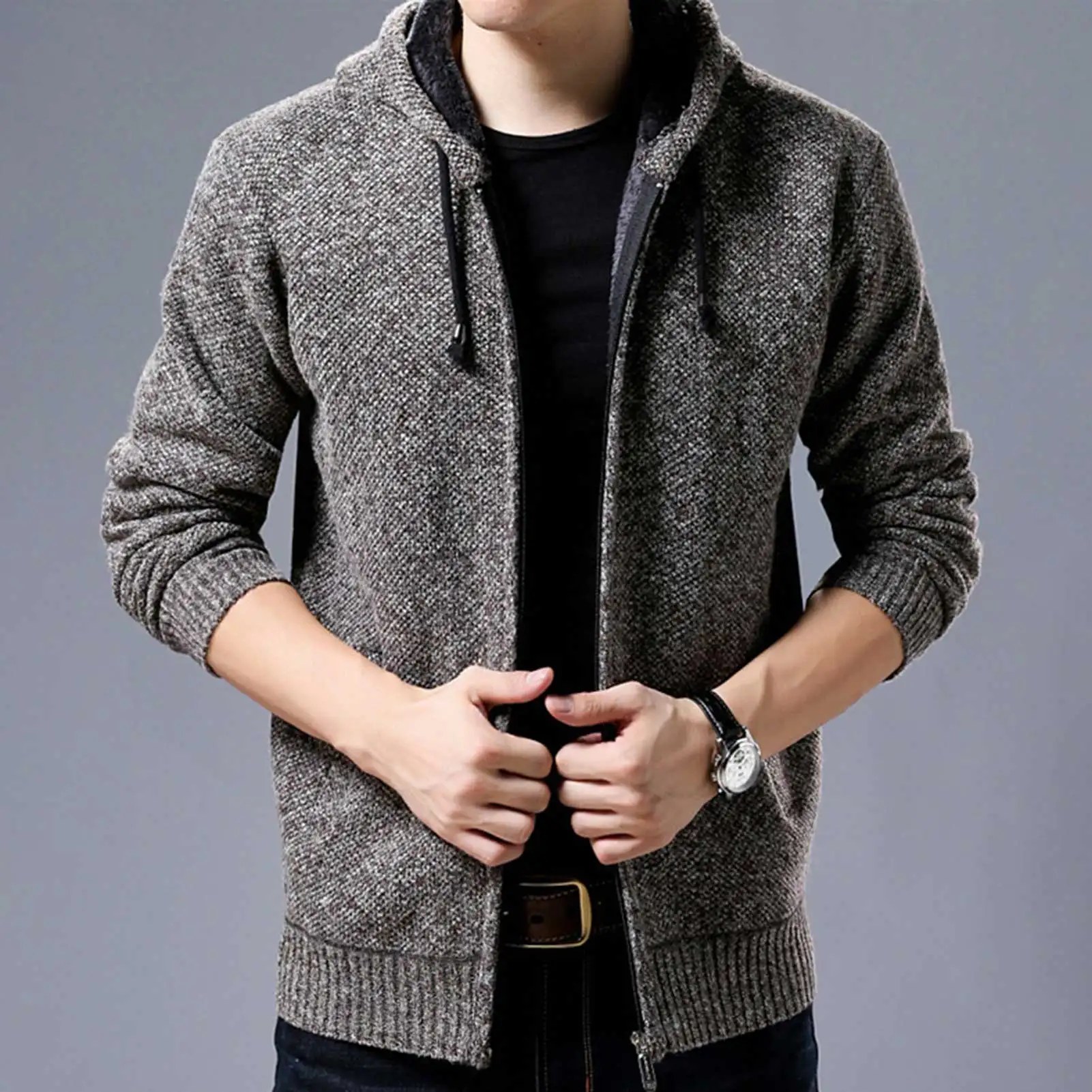 Мужская осенне-зимняя трикотажная куртка с длинным рукавом, плюшевой подкладкой и карманами на молнии