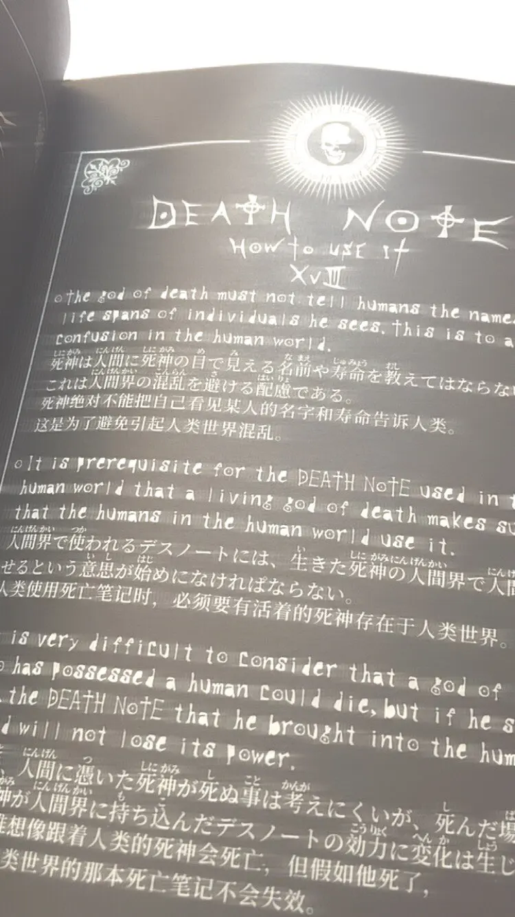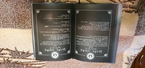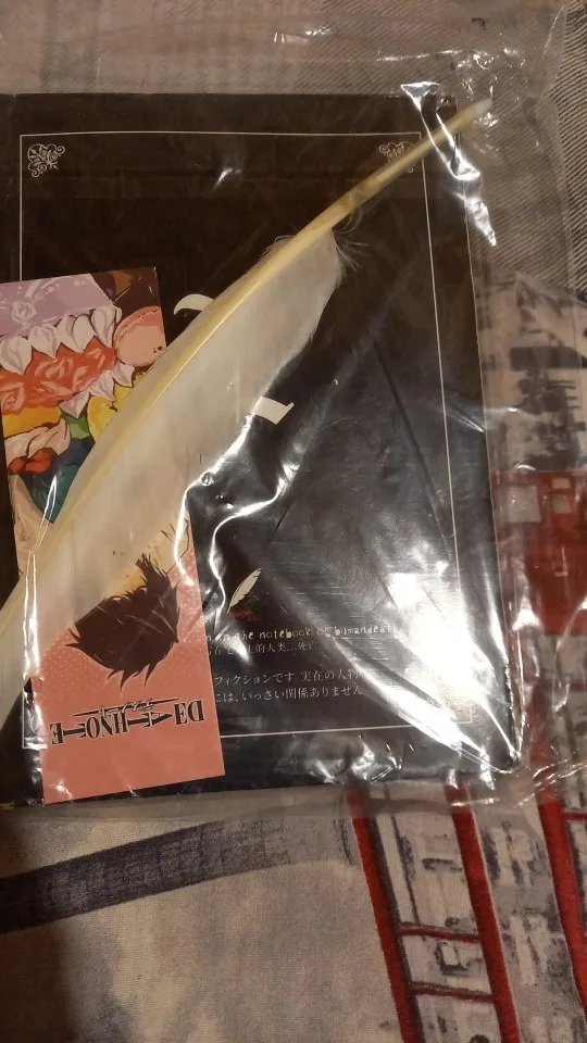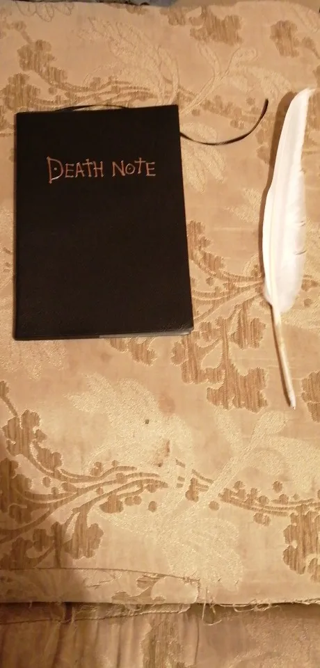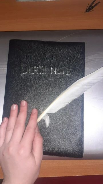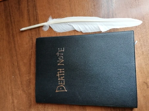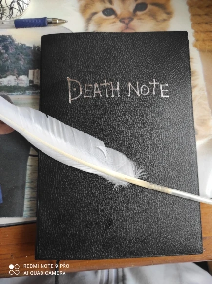 Отличная штука. Блокнот в фирменном футляре, прилагается ручка-гусиное перо, в начале перечислены правила работы с тетрадью на английском и японском, далее уже заполненные кем-то заказы согласно манге. Ну а затем можно вписывать тебе, кого захочешь. Наши решили вписать первой русичку. Доставка до Архангельска 3 недели. А вдруг это работает?;)