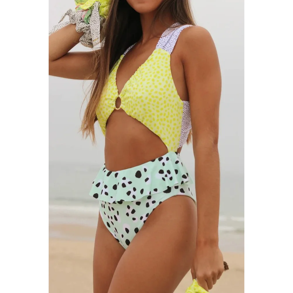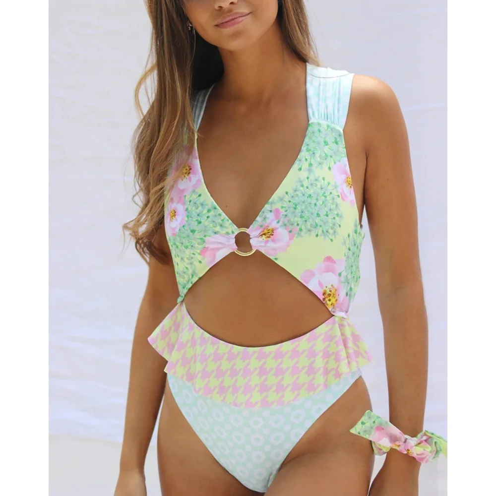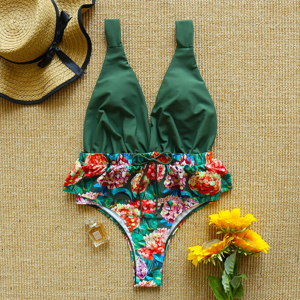 Новинка 2021, слитный купальник с цветочным принтом, оборками, откр...