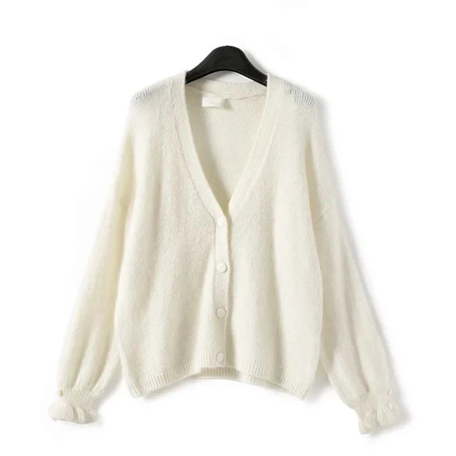 Детский мохеровый кардиган Mia, Осень-зима 2021, Повседневный свитер с пышными рукавами и V-образным вырезом, теплый винтажный Шикарный джемпер, женские свитера