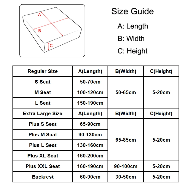 4. Выберите правильный чехол для дивана в соответствии с различными размерами сиденья подушки.