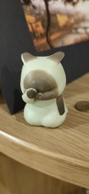 очень прикольный котик:) на ощупь приятный, покрашен красиво. на полочке стоит отлично
