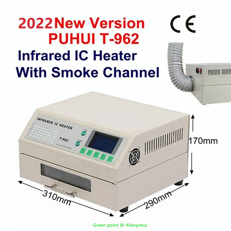 Этот товар является 2020 Новый PUHUI T-962 инфракрасный IC НАГРЕВАТЕЛЬ. Задняя часть T-962 спроектирована с дымовым выхлопным каналом, что более удобно в использовании.