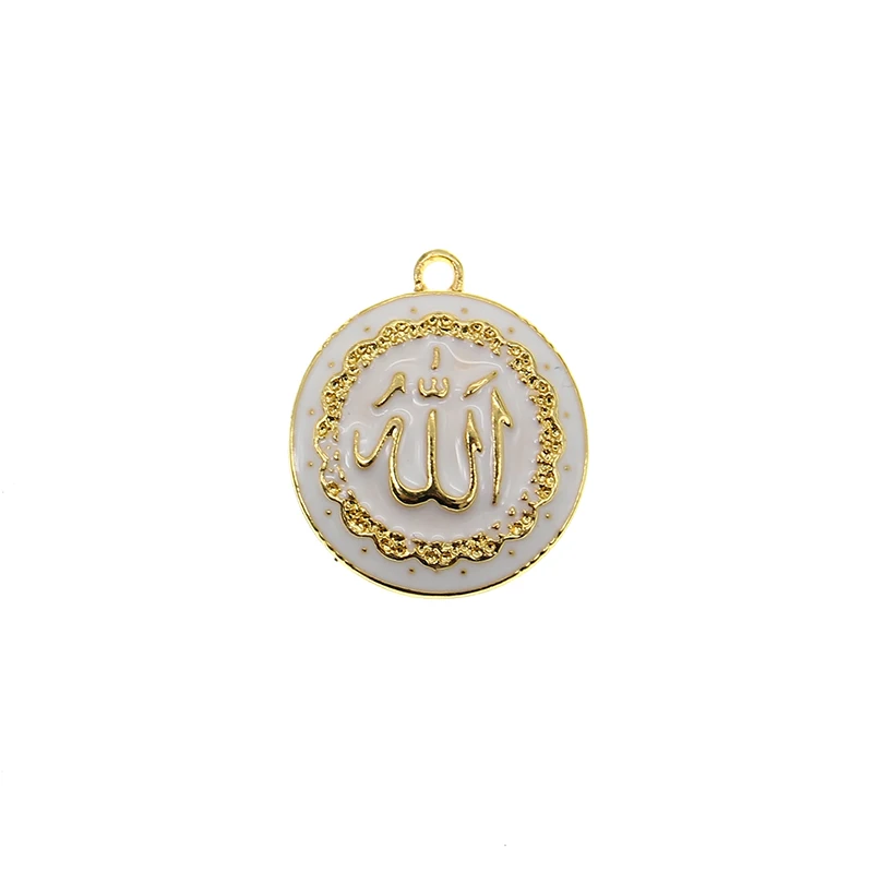 Сплав, Аллах, Шарм для ребенка, милый, индивидуальный, красочный, цветок, Круглый, золото, покрытая серебром эмаль, мусульманский, подвеска в арабском стиле, шармы