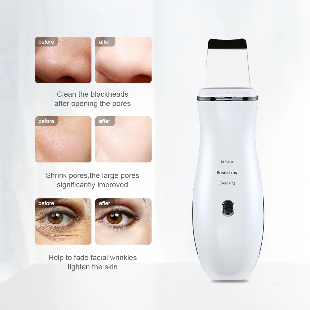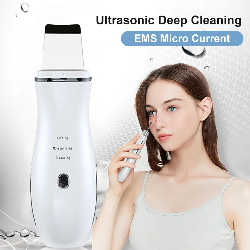 Ультразвуковой скраббер для кожи, пилинг, лопатка, ионное средство для удаления угрей, глубокий аппарат для чистки лица, массажер для подтяжки кожи лица