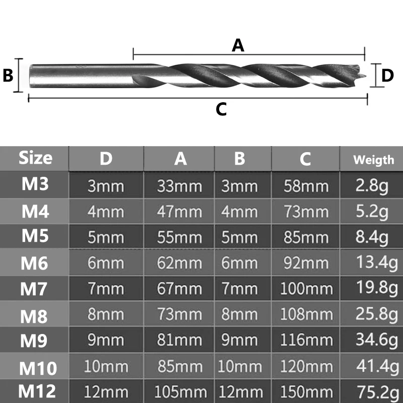 Спиральное сверло M3-M12 для работ по дереву и дереву