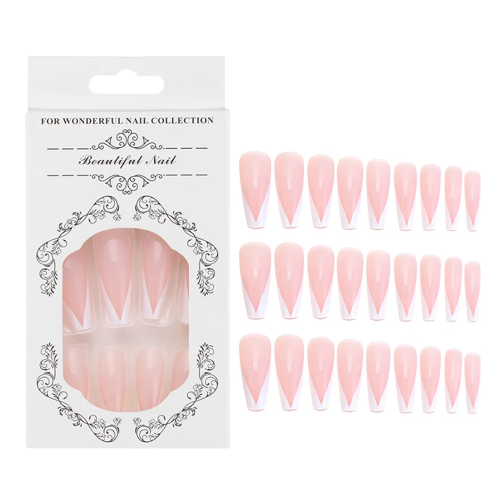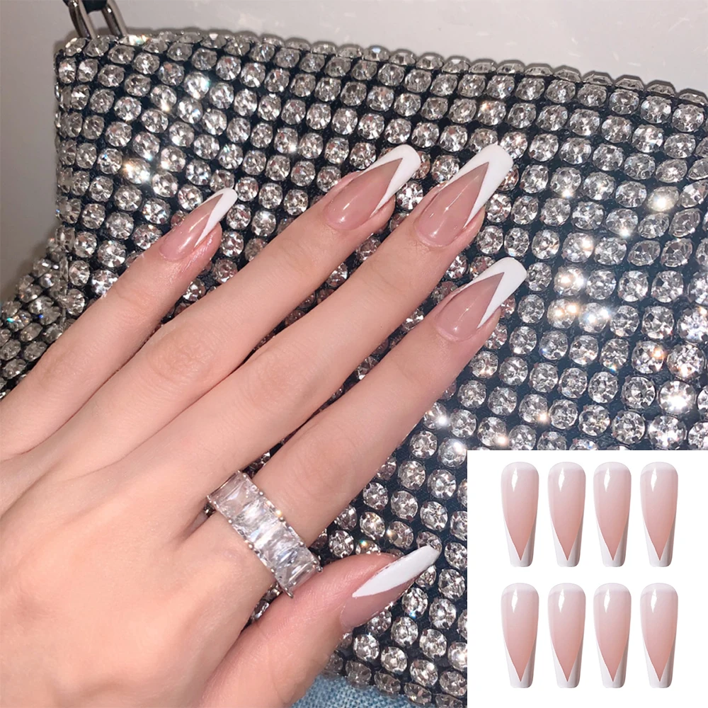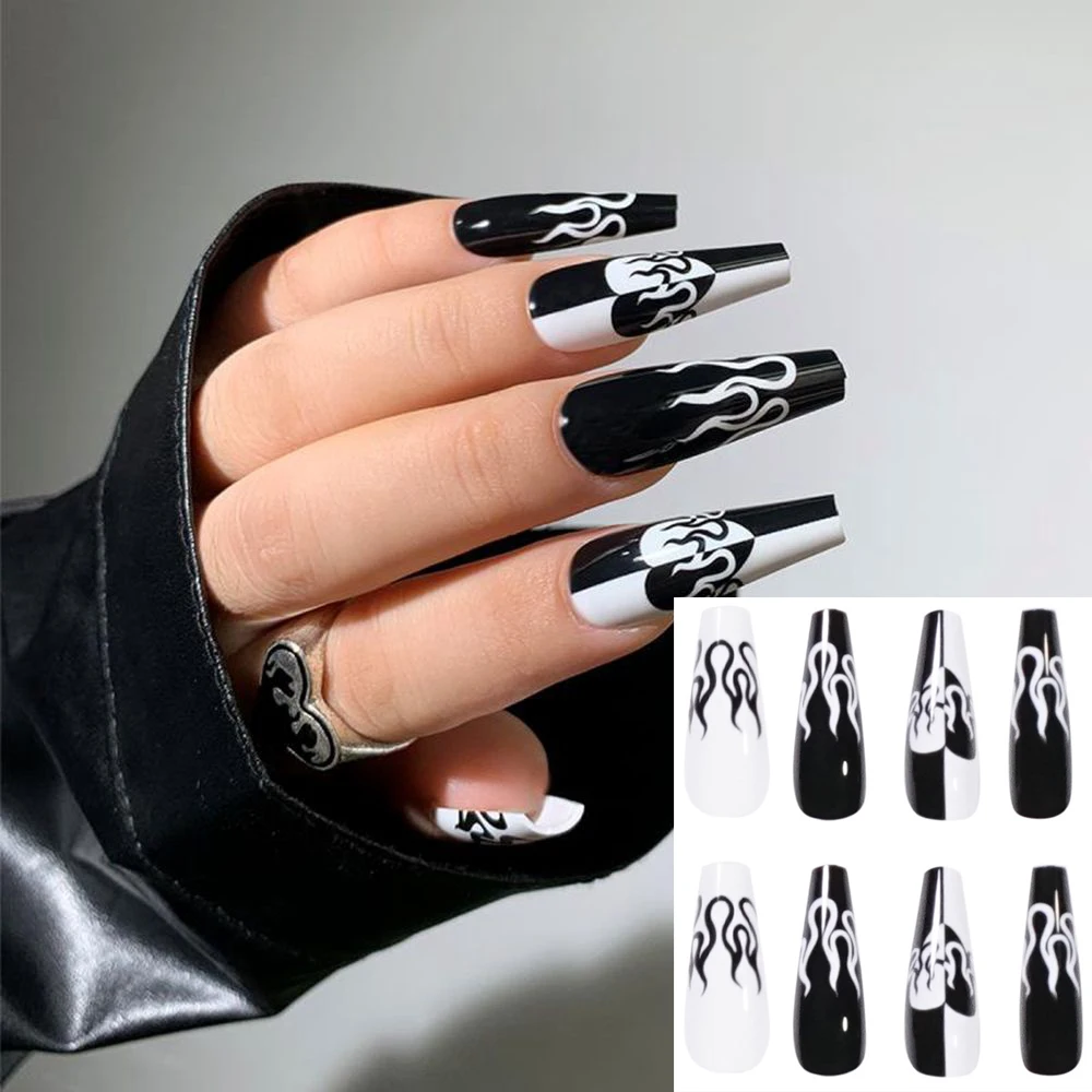 24 шт. поддельные ногти с клеем Стразы длинный гроб пламя прессовать на ногтях съемные французские палочки на ногтях Искусство DIY