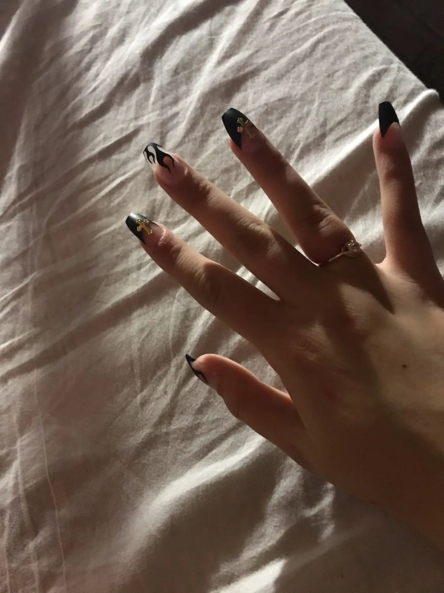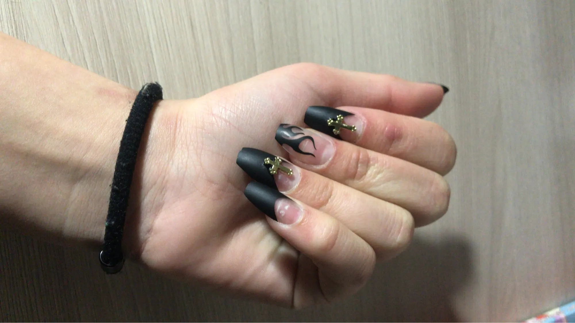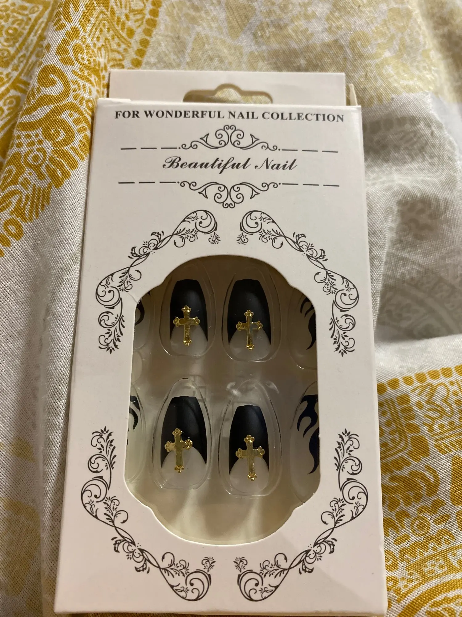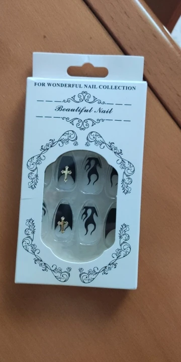 Клей очень плохой : Ставлю четыре звезды , Только из-за клея! Кресты цепляются за волосы Ну это не суть можно оторвать! Приклеила я ногти на клей как надо Помылась. На какой-то фотографии видно что мизинец отходит:Придётся клеить на свой клей: