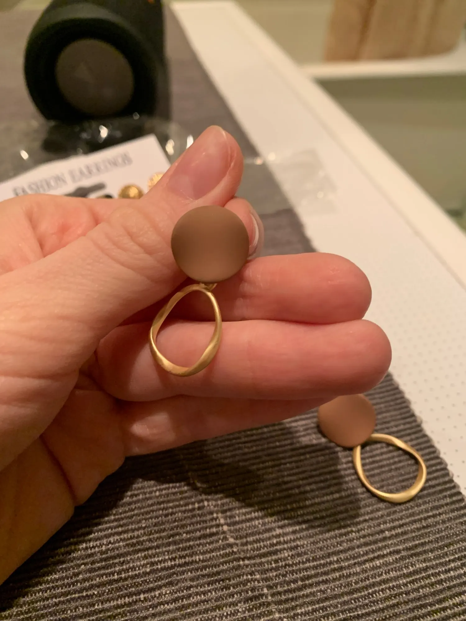 Серьги выглядят проще, чем на фото. Я думала, что кольца металлические, они оказались пластмассовые . Немного разочарована, поэтому 4 звёзды. Но продавец молодец, очень быстро отправил товар!
