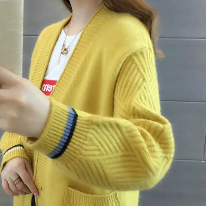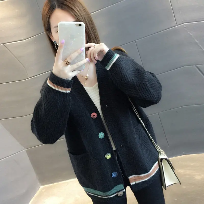 Свитера 3XL, кардиган, женская элегантная шикарная Яркая дизайнерская Корейская верхняя одежда на пуговицах с V-образным вырезом, трикотажная универсальная модная женская одежда