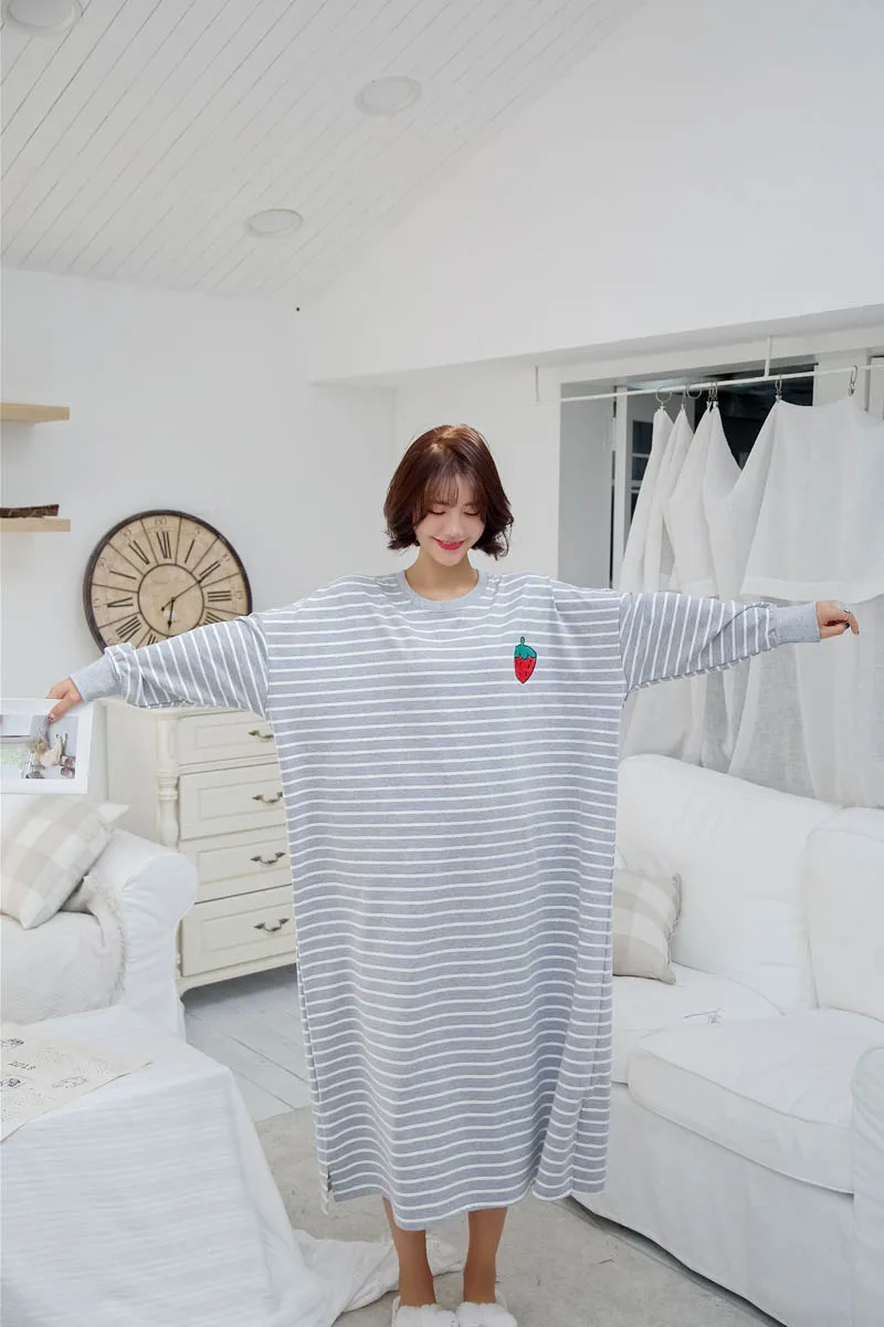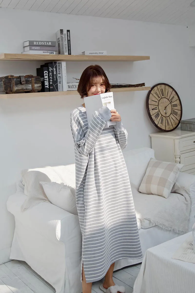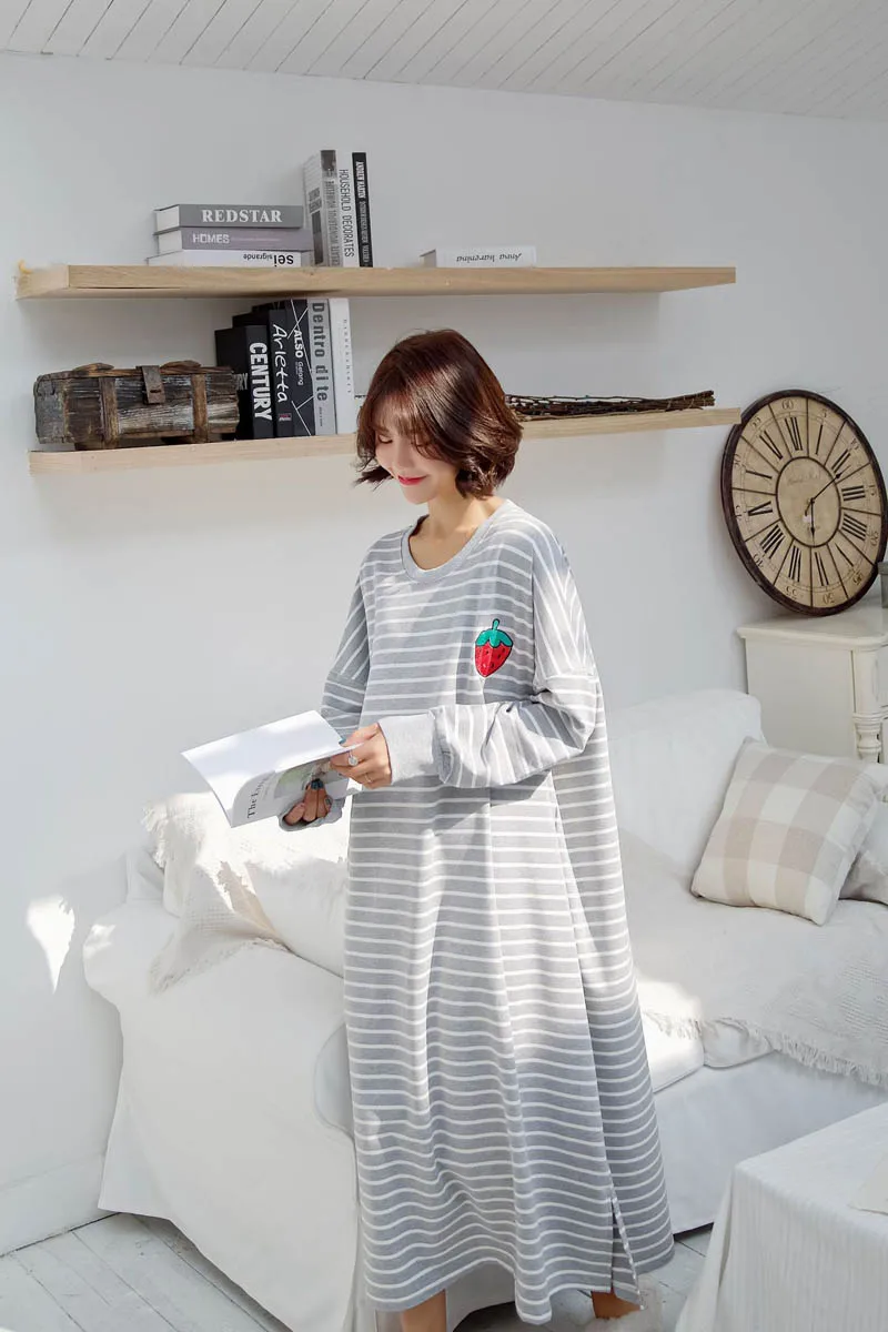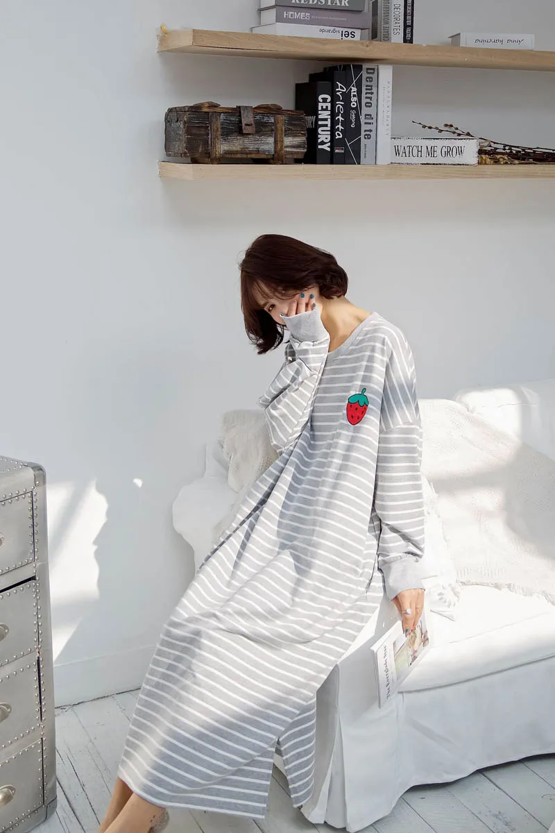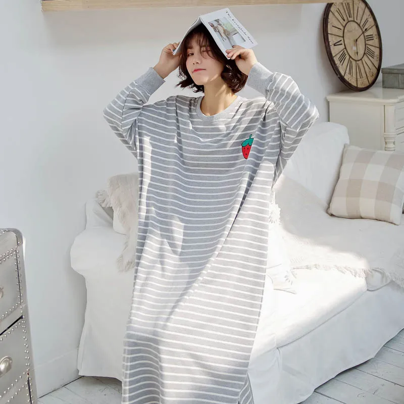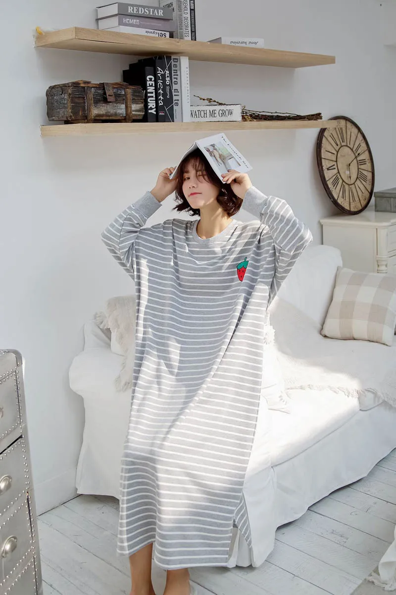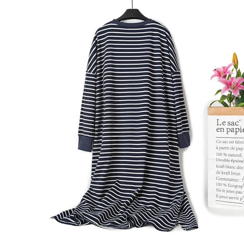 Женское Хлопковое платье с длинным рукавом, в полоску