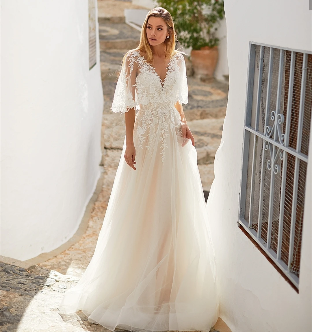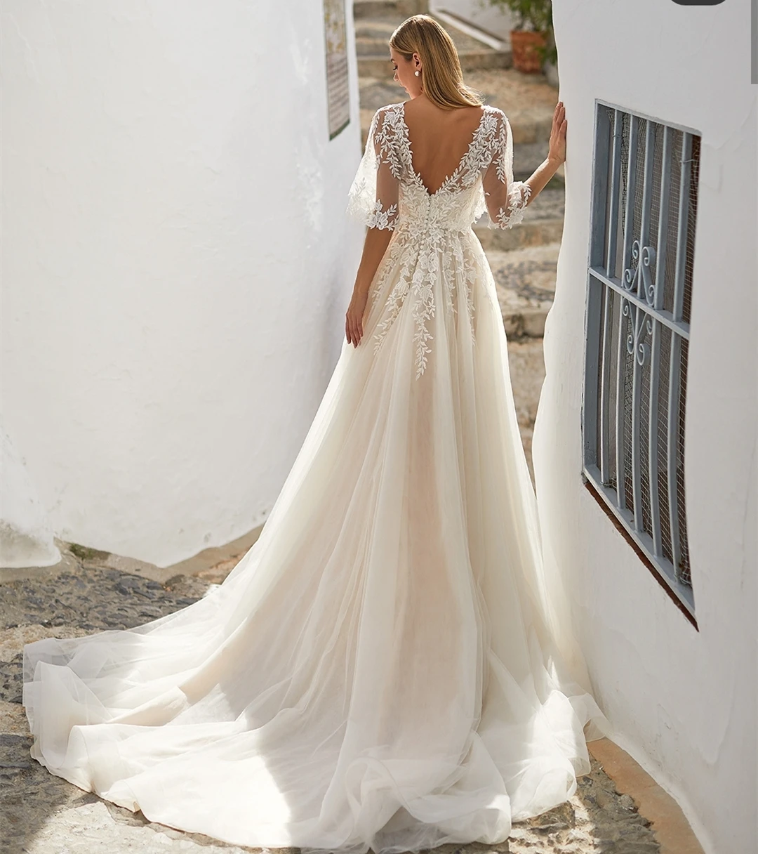 Женское свадебное платье It's yiiya, белое кружевное платье А-силуэта со шлейфом и открытой спиной на лето 2019
