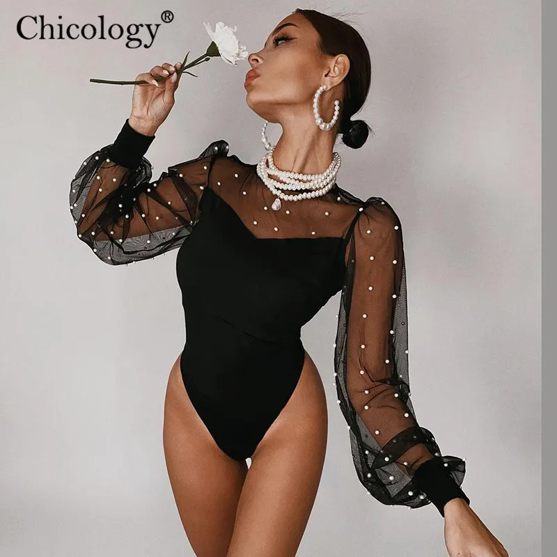 Chicology груша сетка Лантер с длинным рукавом боди Женская мода осень зима сексуальный клуб день рождения Цельный боди 2020 Y2K одежда