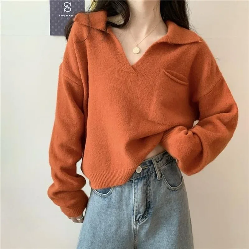 Свитер женский трикотажный, с V-образным вырезом и длинным рукавом