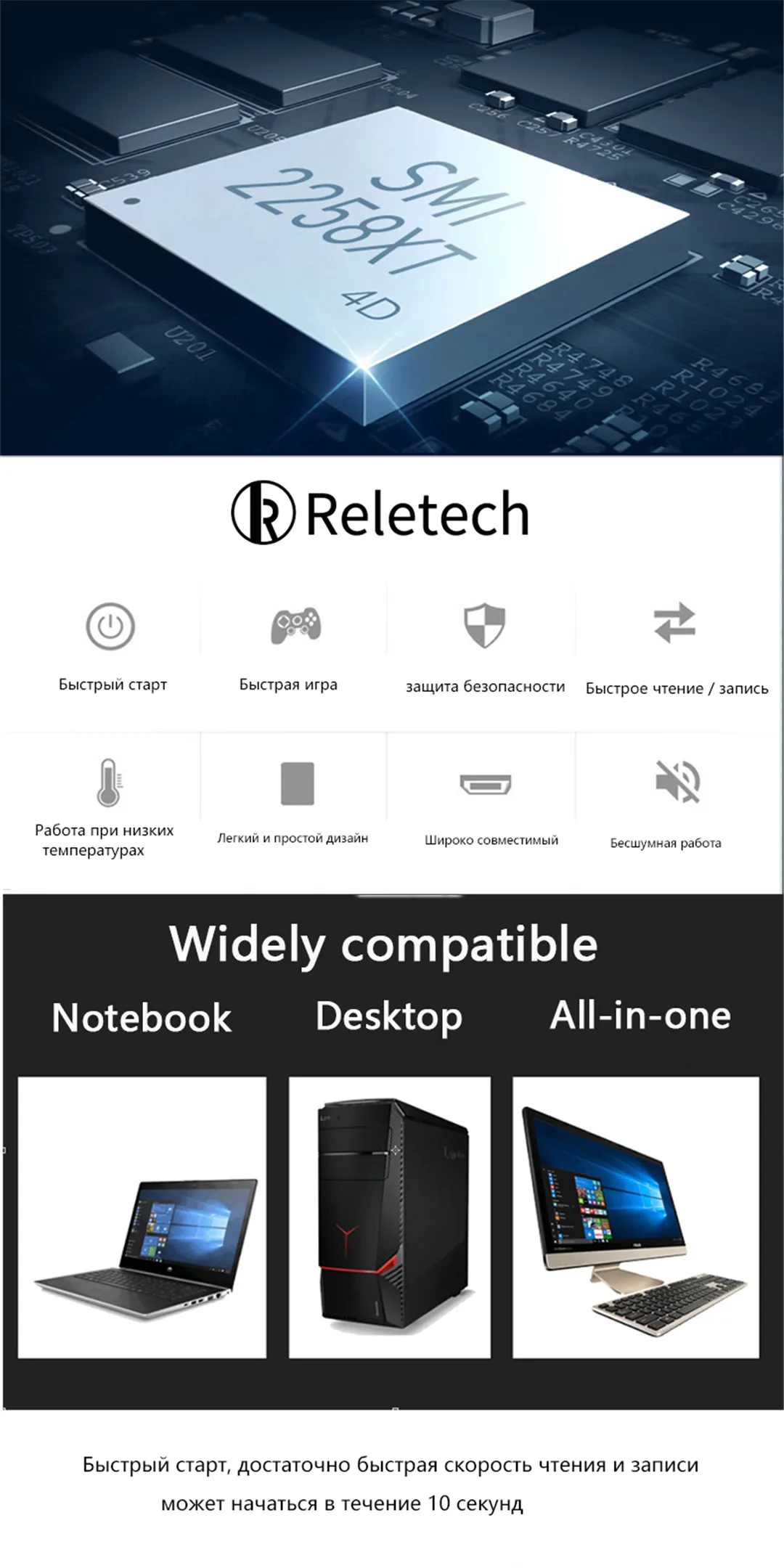 Пришел быстро, поставил на него систему, включается комп в работу за 50 секунд.
