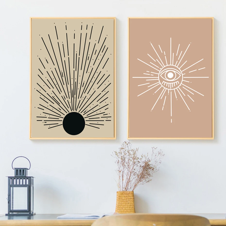 Настенный постер в скандинавском стиле с изображением Солнца и Луны в стиле бохо, абстрактный пейзаж, Картина на холсте, картины для гостиной, интерьер, домашний декор