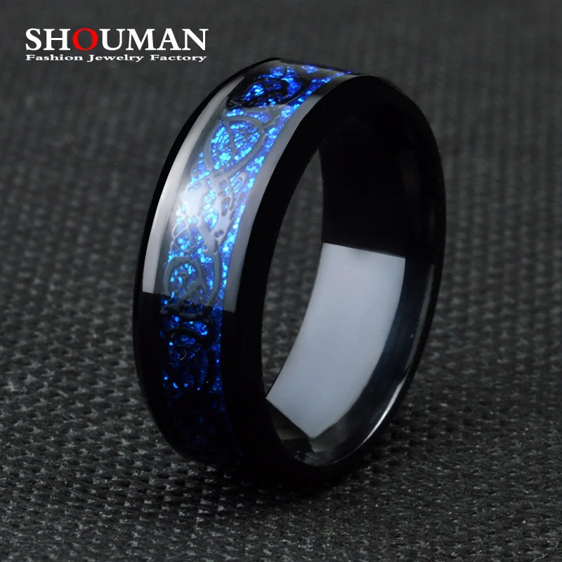 Кольцо мужскоеженское, из нержавеющей стали, с чернымсиним драконом