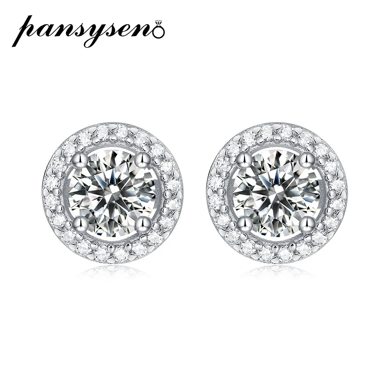 PANSYSEN Классический 925 стерлингового серебра 0.5CT настоящий Муассанит обручальные серьги-гвоздики из белого золота 18 карат Цвет, хорошее ювелирное изделие