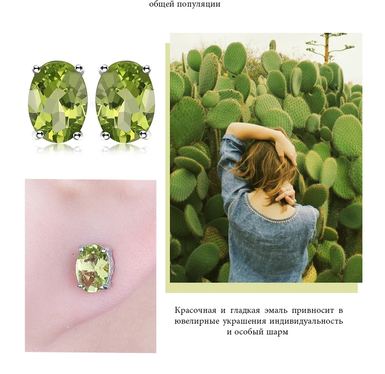 Женские серьги-гвоздики из серебра 925 пробы с натуральным Перидотом 2021 карата
