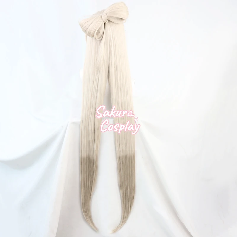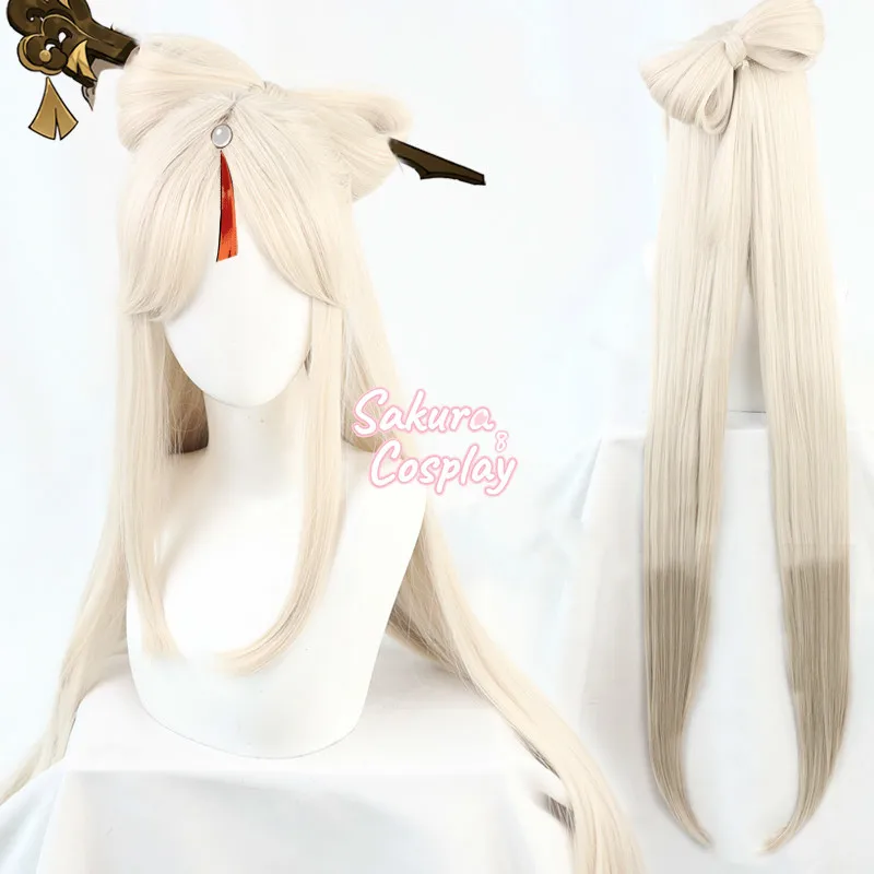 Genshin воздействия Ningguang Косплэй длинные постепенное бежевый 8 с узором в виде сердечек и бантом термостойкие синтетические волосы Хэллоуин вечерние + бесплатная парик Кепки