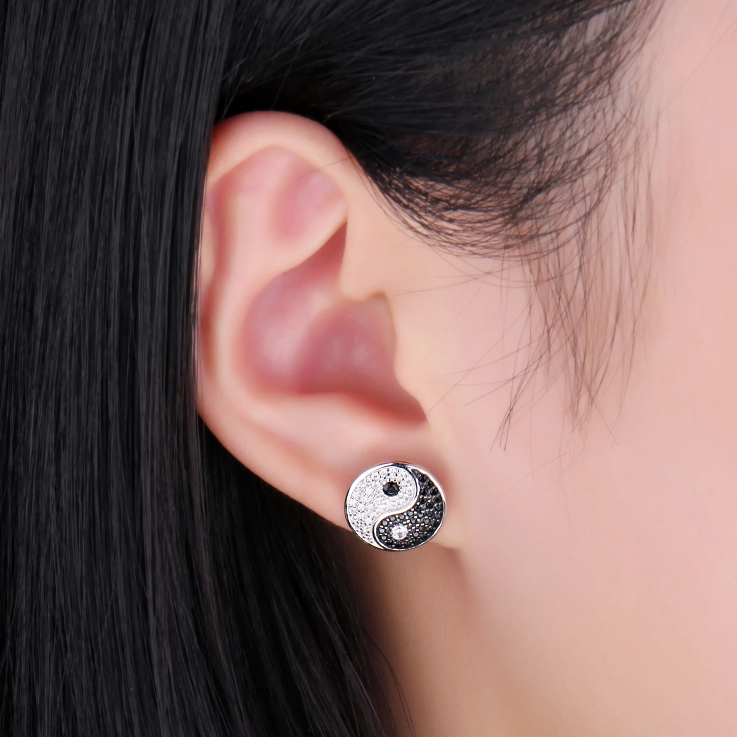 Женские серьги-гвоздики из серебра 925 пробы с натуральной черной шпинелью