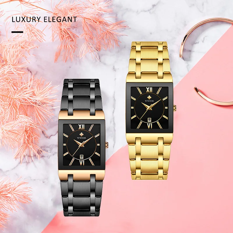 Стиль: Модный, роскошный, элегантный, платье;Дизайнерские квадратные часы для женщин;Часы весна-лето;Спецификация приближения:-Чехол Диаметр: 40 мм-Чехол Толщина: 9 мм-Ширина ремешка: 20 мм-Общая длина: 22 мм Посылка включает в себя:-Часы WWOOR-1 шт.-1 x WWOOR тег