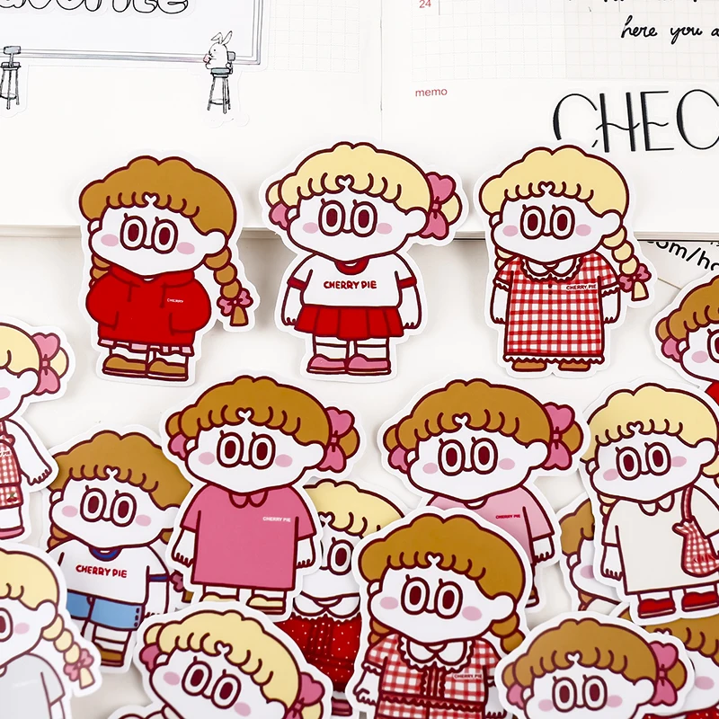 Наклейка на руку с вишневой девушкой, 20 шт., в Корейском стиле, для самостоятельной сборки альбома, для сотового телефона, водостойкая декоративная наклейка