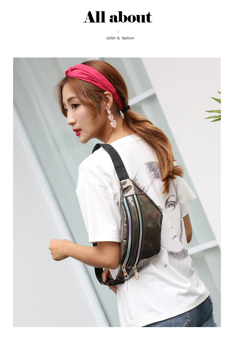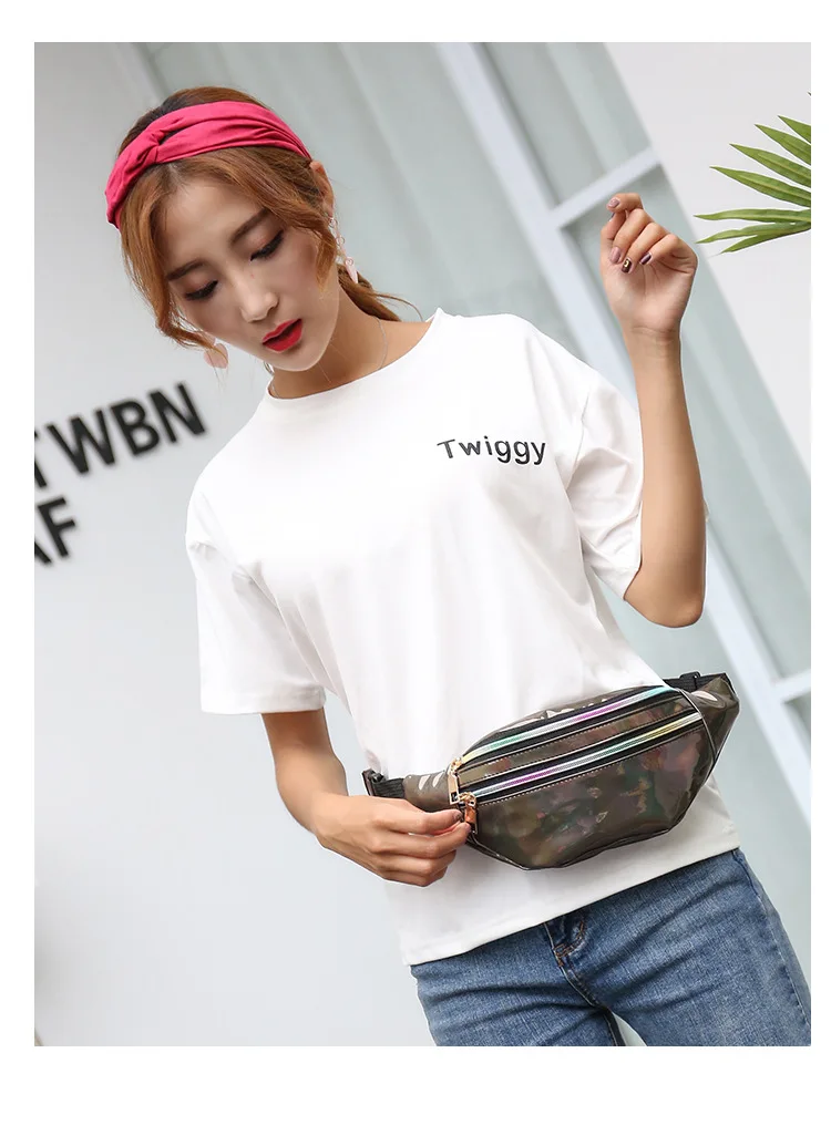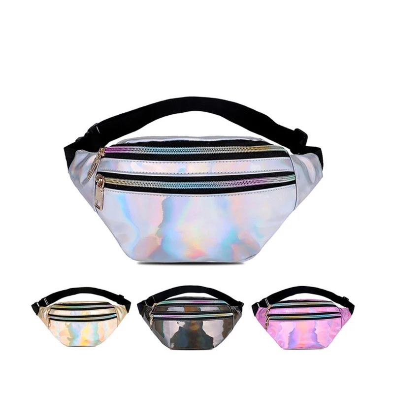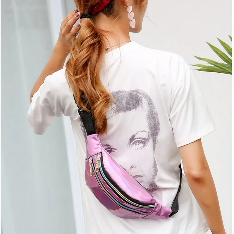 Голографическая дорожная поясная сумка для женщин, модный кошелек с лазерной печатью для девушек, кожаный чемоданчик розового цвета на бедро