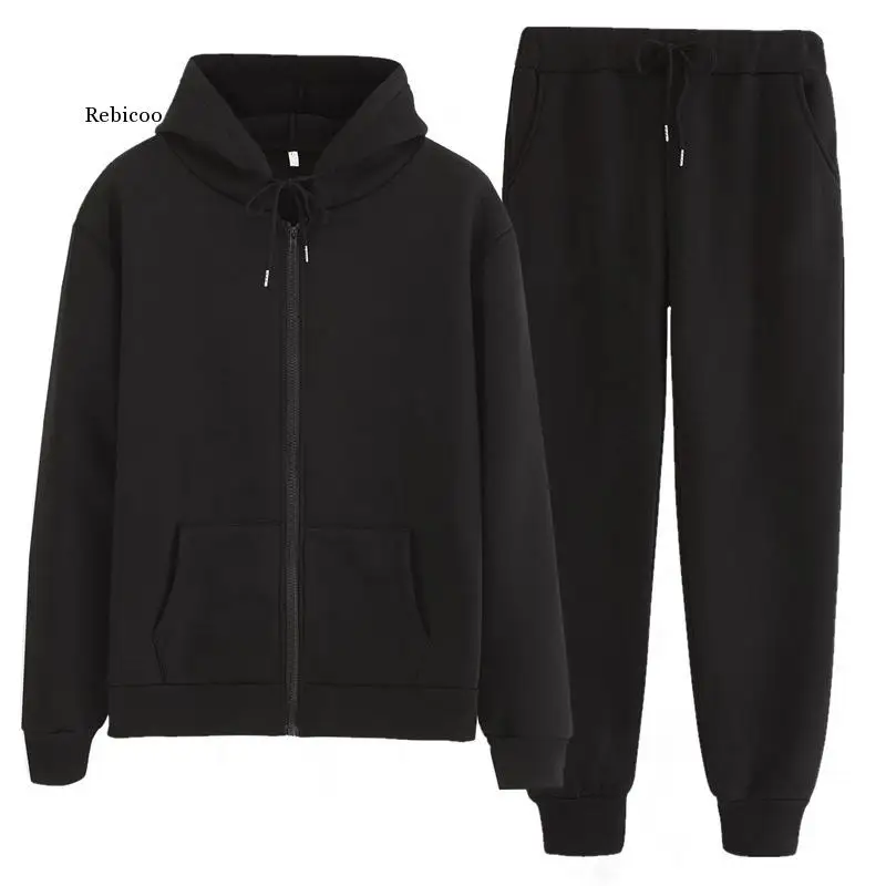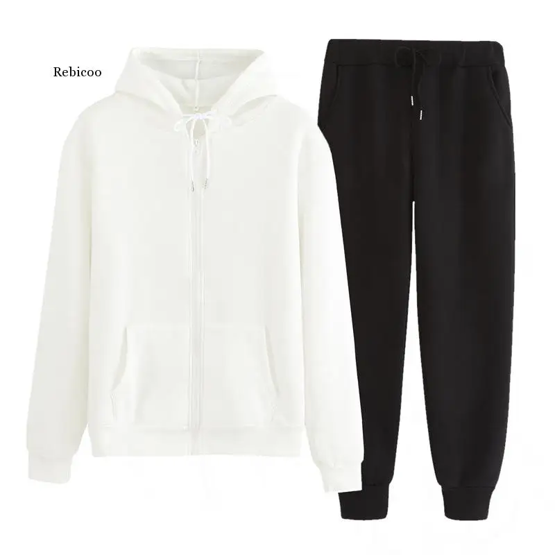 Осенне-зимние повседневные женские комплекты, теплые однотонные дамские толстовки на молнии с капюшоном и брюки, свободные женские спортивные костюмы, дикий женский комплект