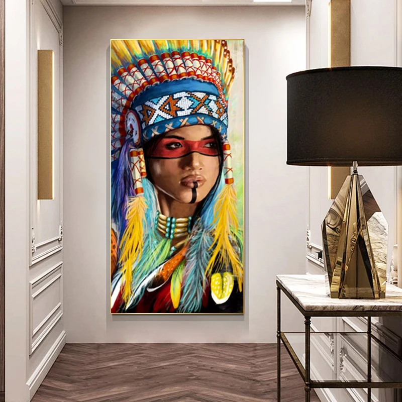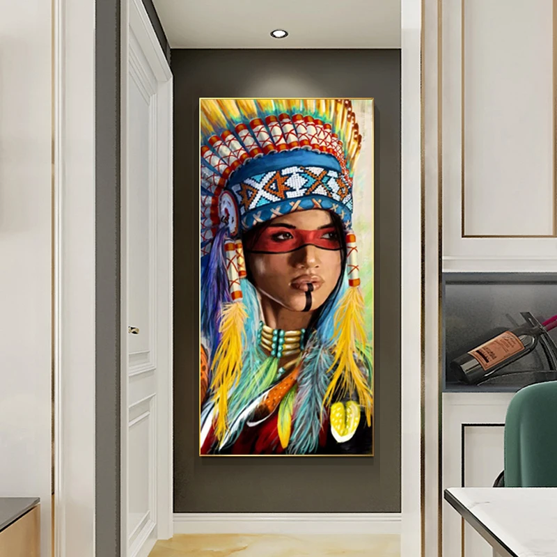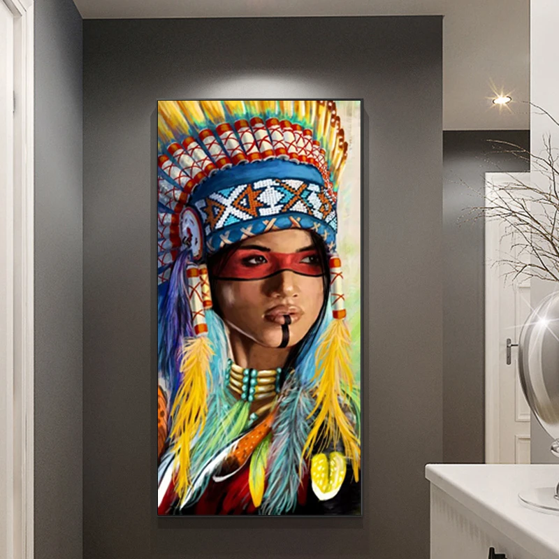 Желтый Пернатый Для женщин Арт холст картины родной Индии девушка настенные художественные плакаты и принты холст картины для Декор в гостиную