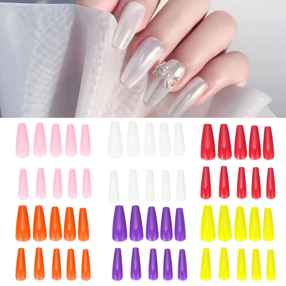 Длинные накладные ногти балерины 100 шт., прессованные накладные ногти, АБС-пластик, акрил, полное покрытие, декор для ногтей, для самостоятельного маникюра