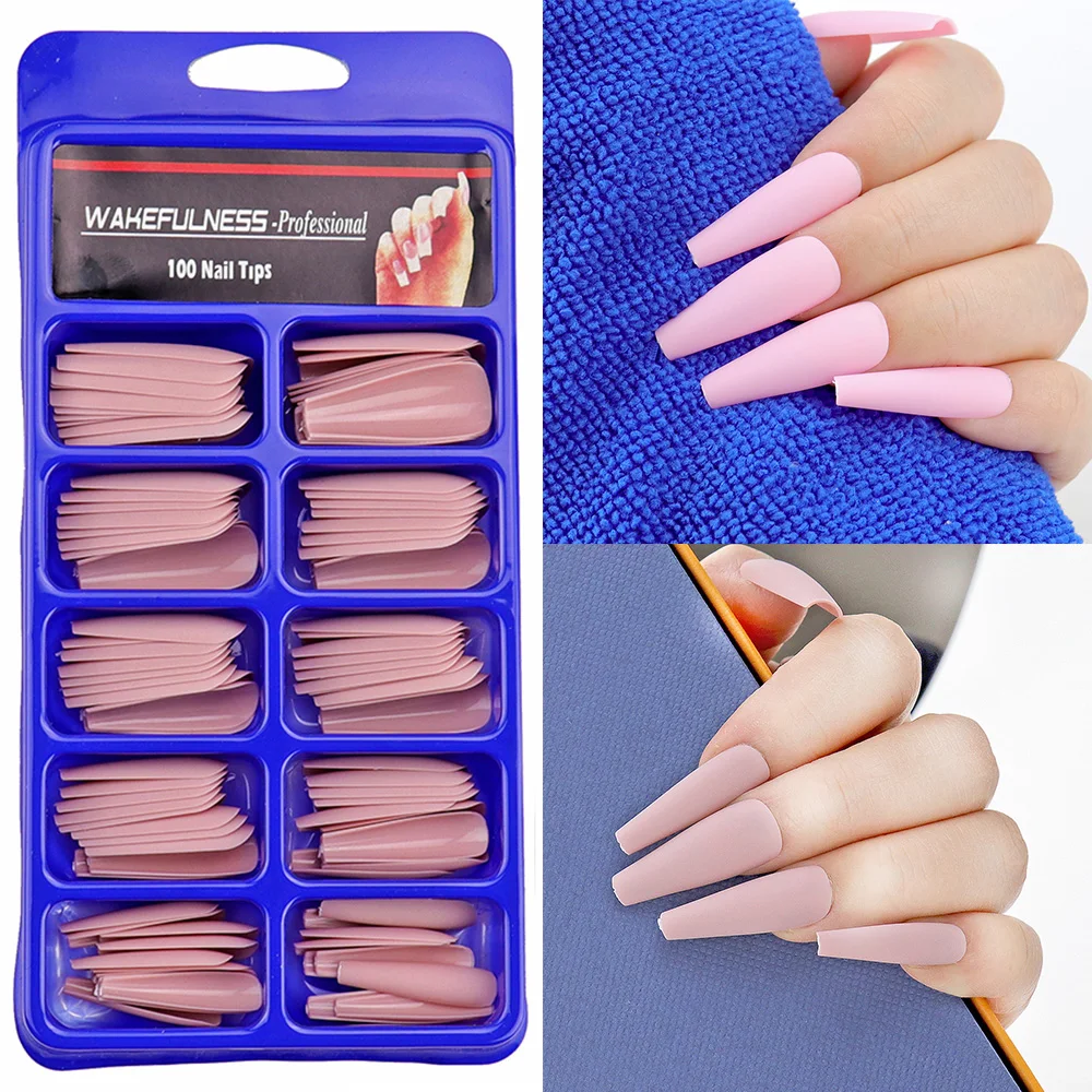 100 шт. длинные матовые накладные ногти балерина натуральный гроб акриловые накладные ногти АБС полное покрытие Сделай Сам ногти маникюр декор