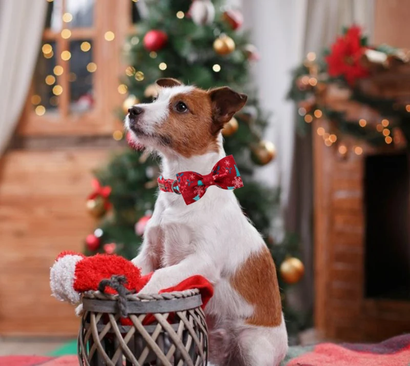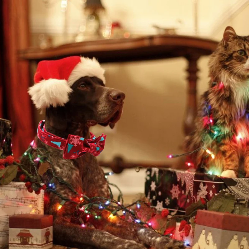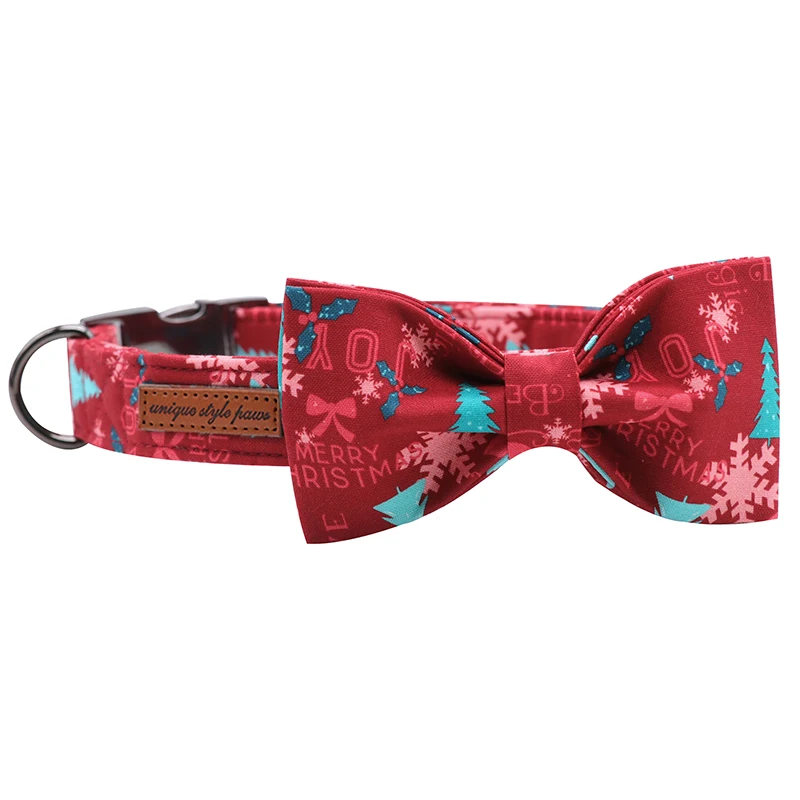 Уникальный Стиль, Рождественский собачий ошейник с лапами, Красная рождественская елка, хлопковый тканевый ошейник для собак с бантом