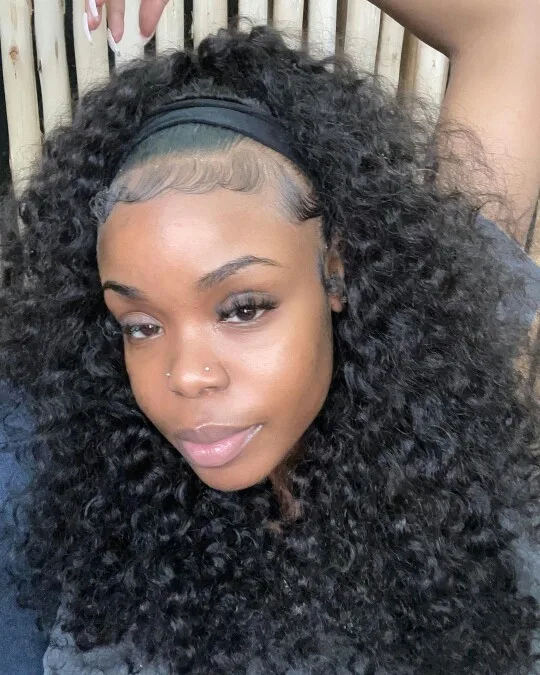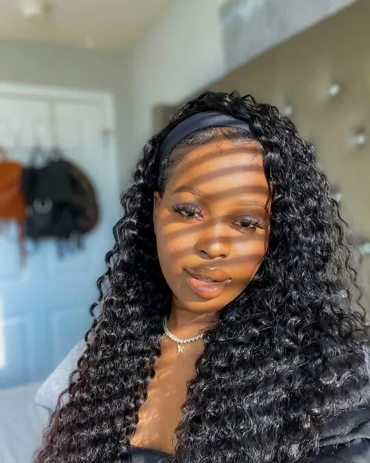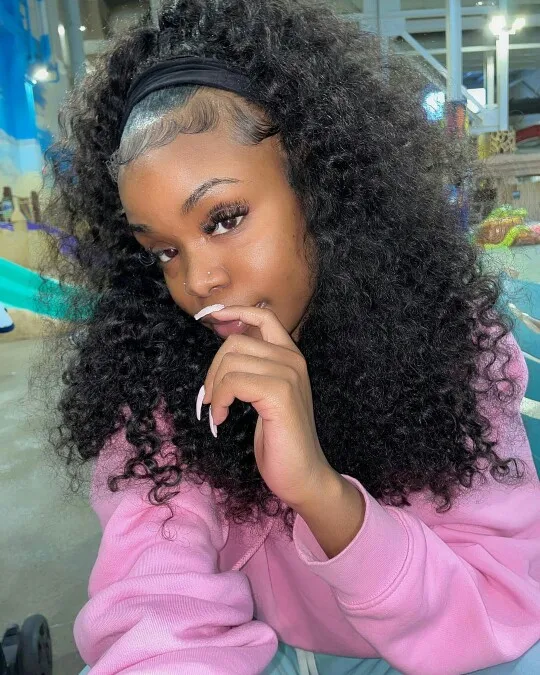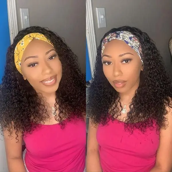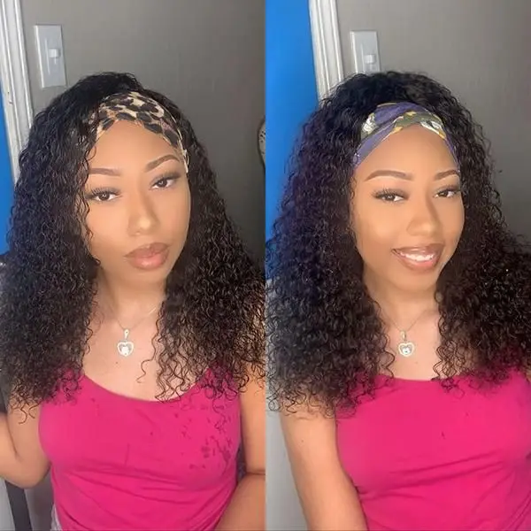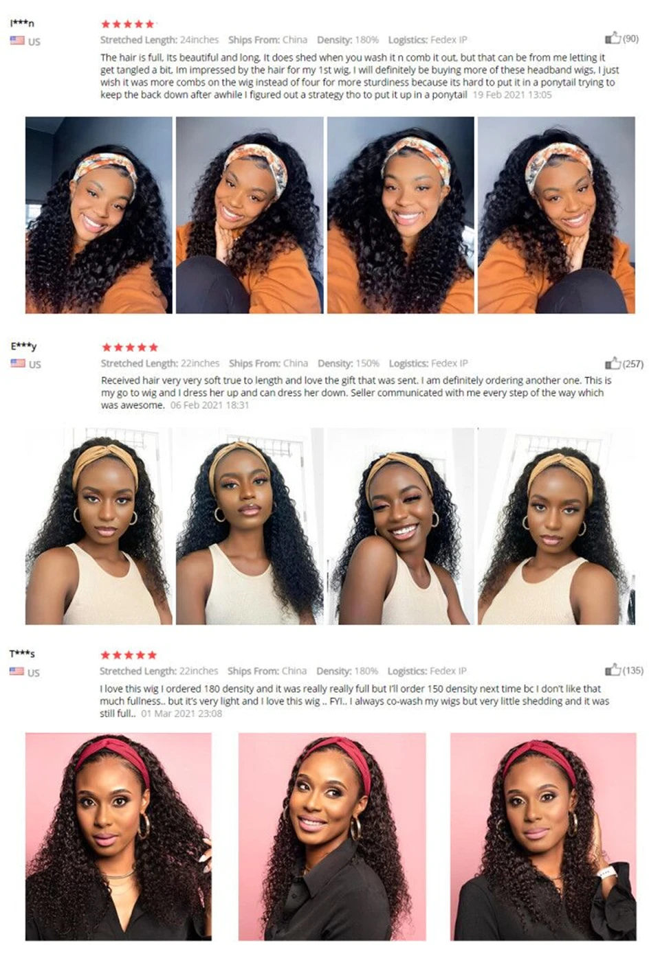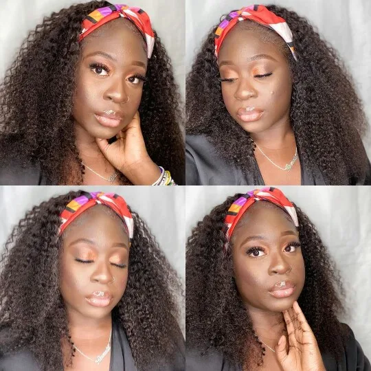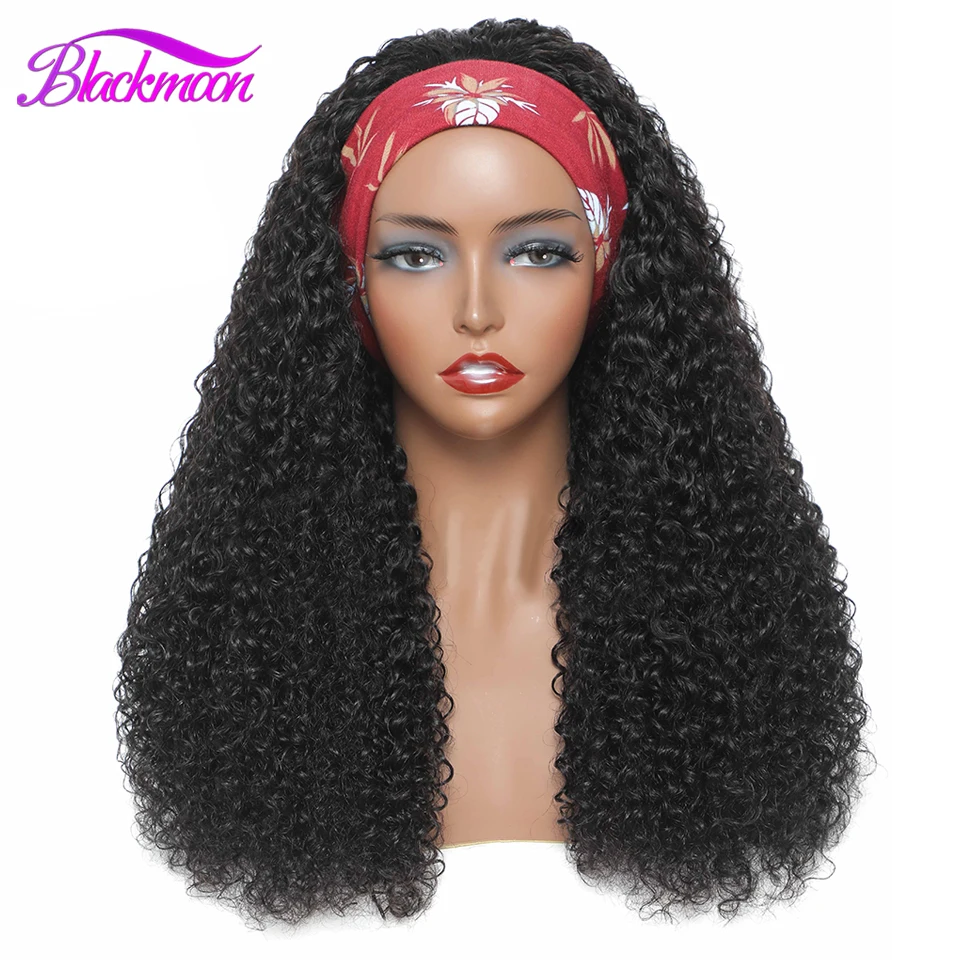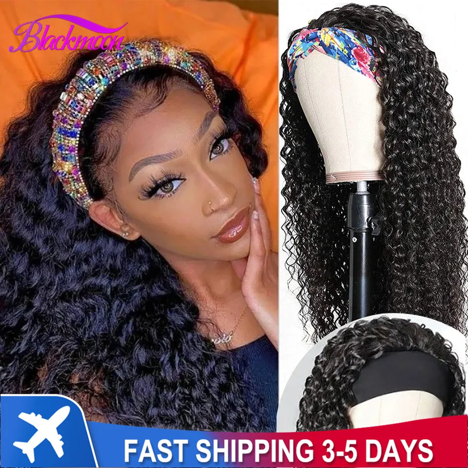 Парики из натуральных бразильских кудрявых волос, парик с головной повязкой без клея, для чернокожих женщин, подходит для новичков