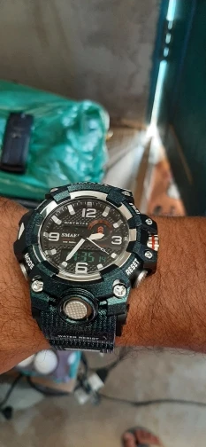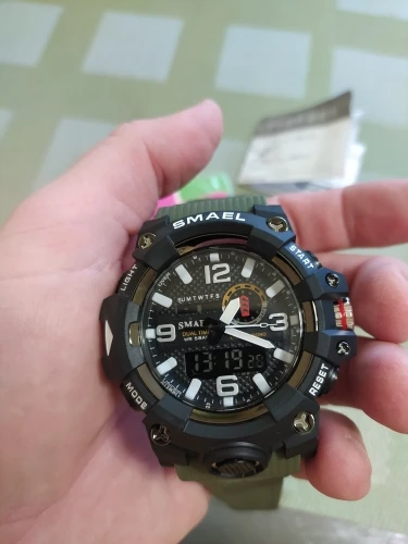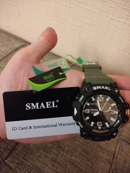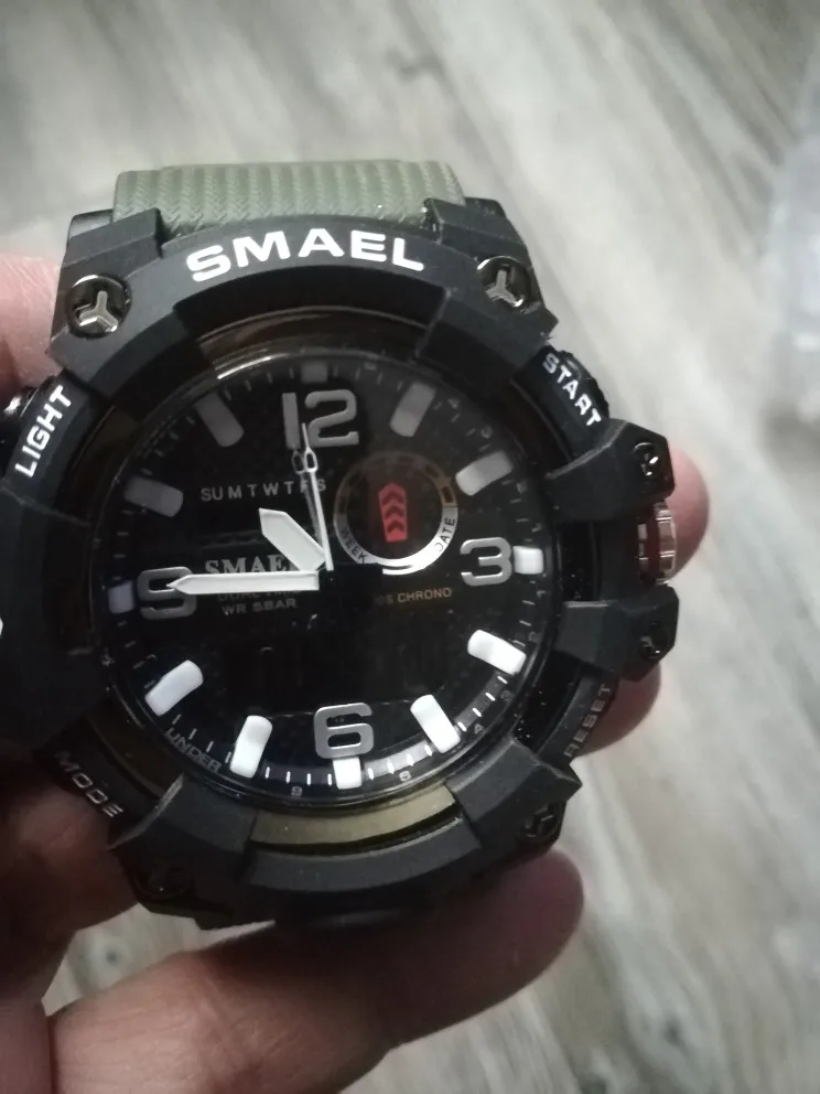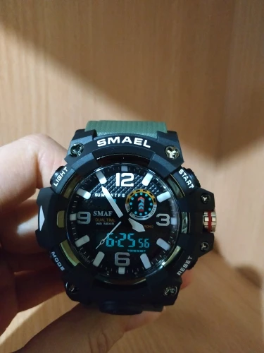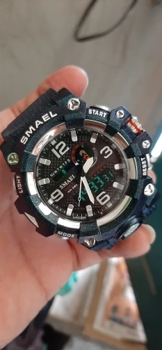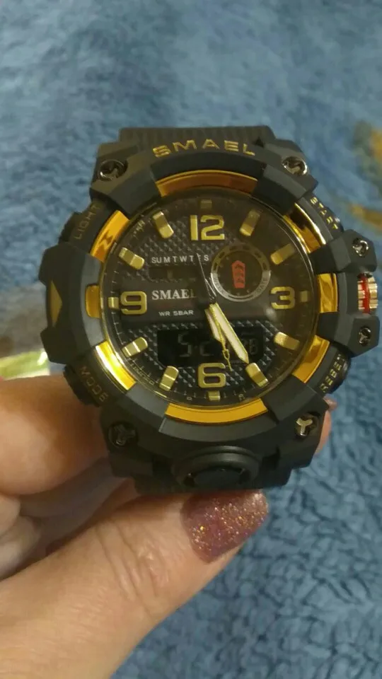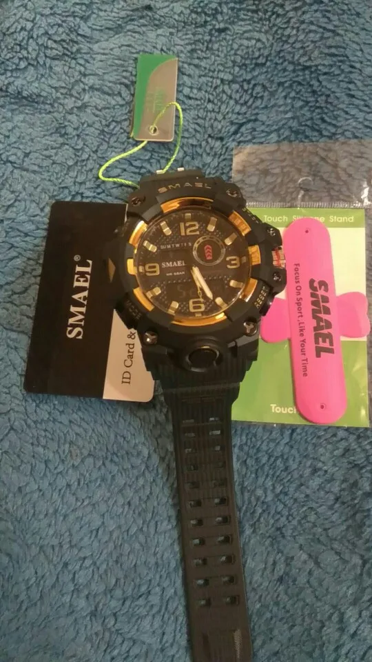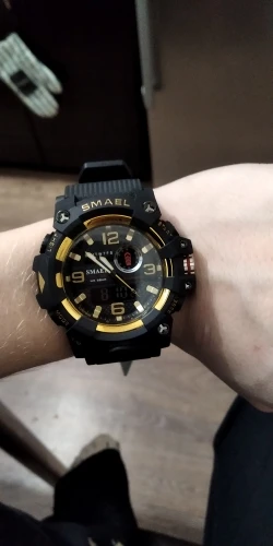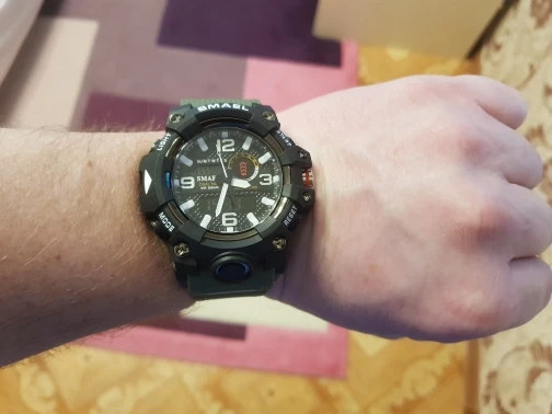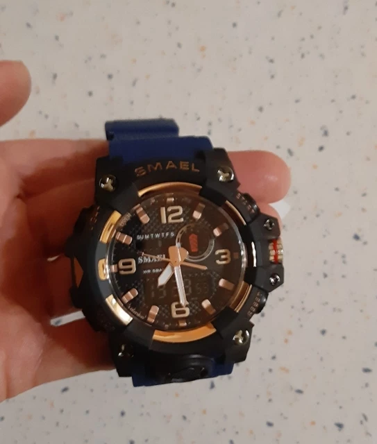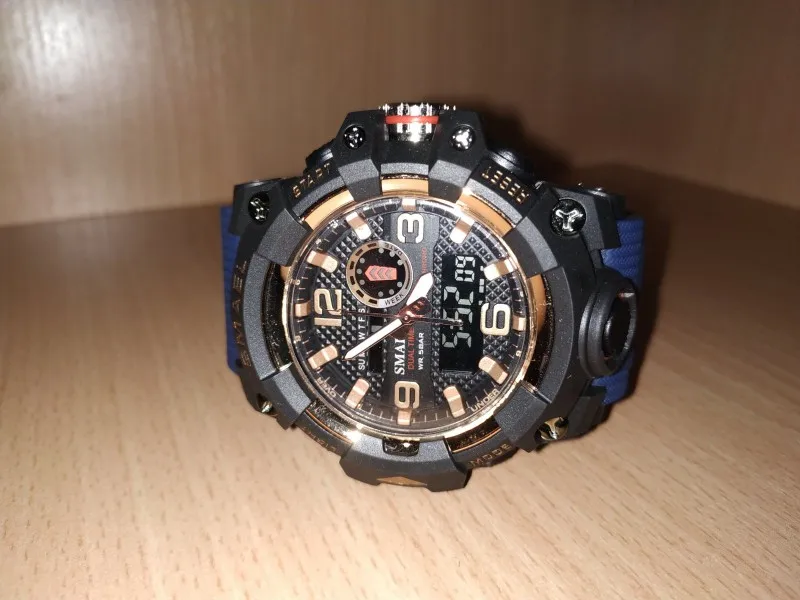 Отличные часы ! случайно выиграл уже вторые! И продавец все честно отправил. Синий с черным и золотым смотрится очень красиво ! золотой циферблат. Именно в этой модели электронные цифры видно хорошо даже без подсветки. но подсветка тут есть , красивая, яркая, синяя. Здорово. очень рад. Часы смотрятся массивно, но на руке не тяжёлые. Все супер.