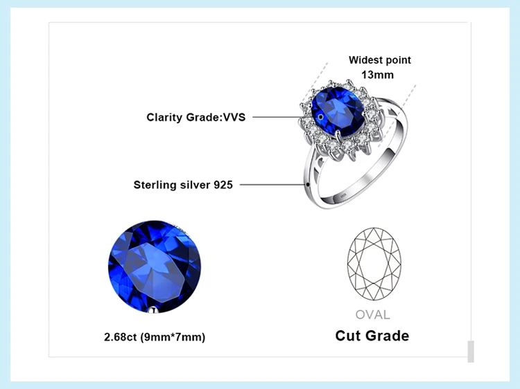 Женское кольцо из серебра 925 пробы, с сапфиром