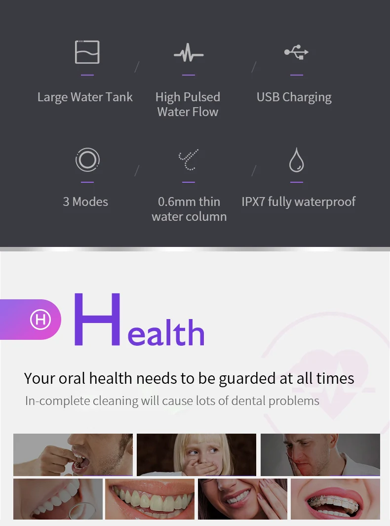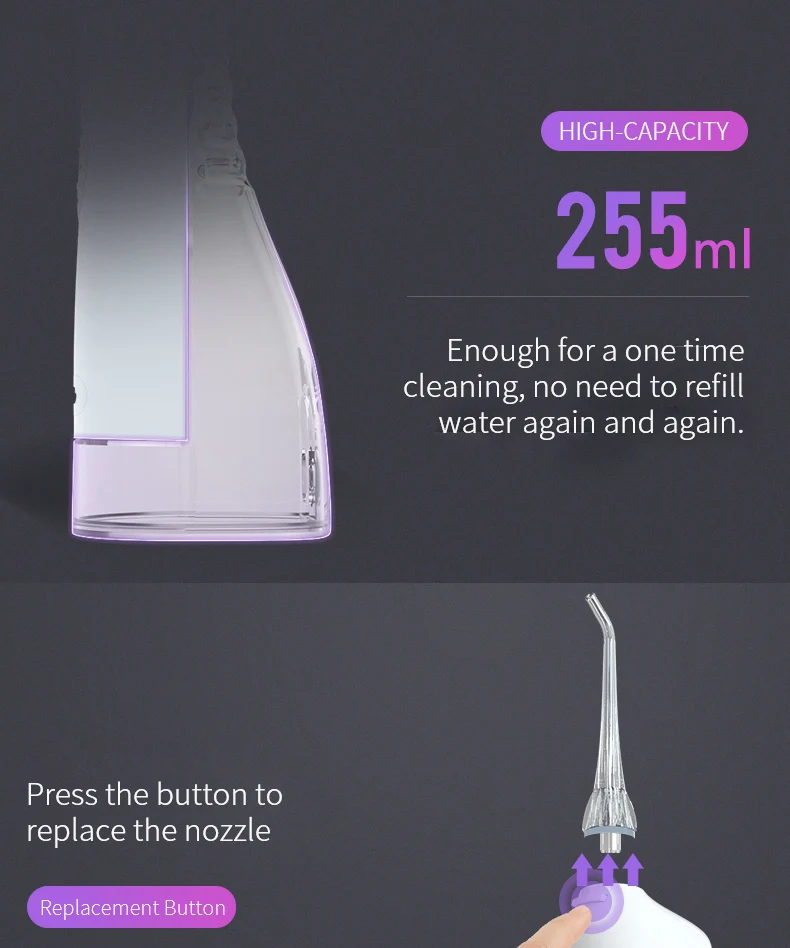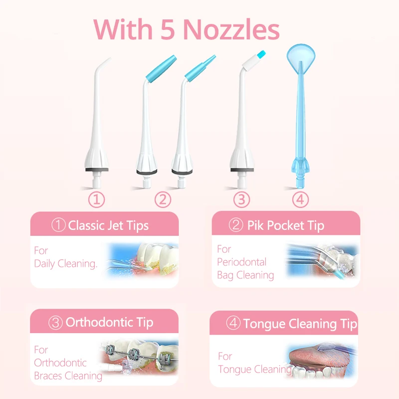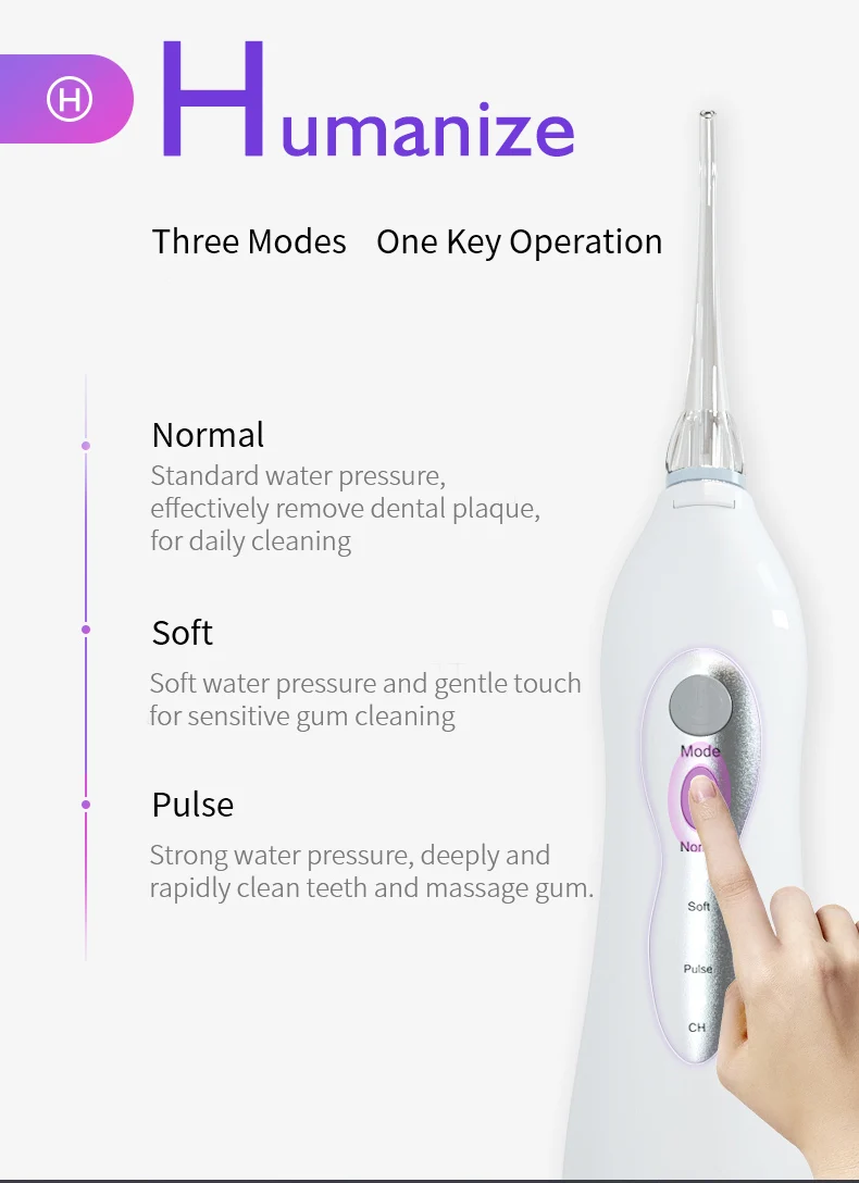 Зубная водяная нить может удалить зубной налет и мусор между зубами и под мастикой для глубокой и тщательной очистки.