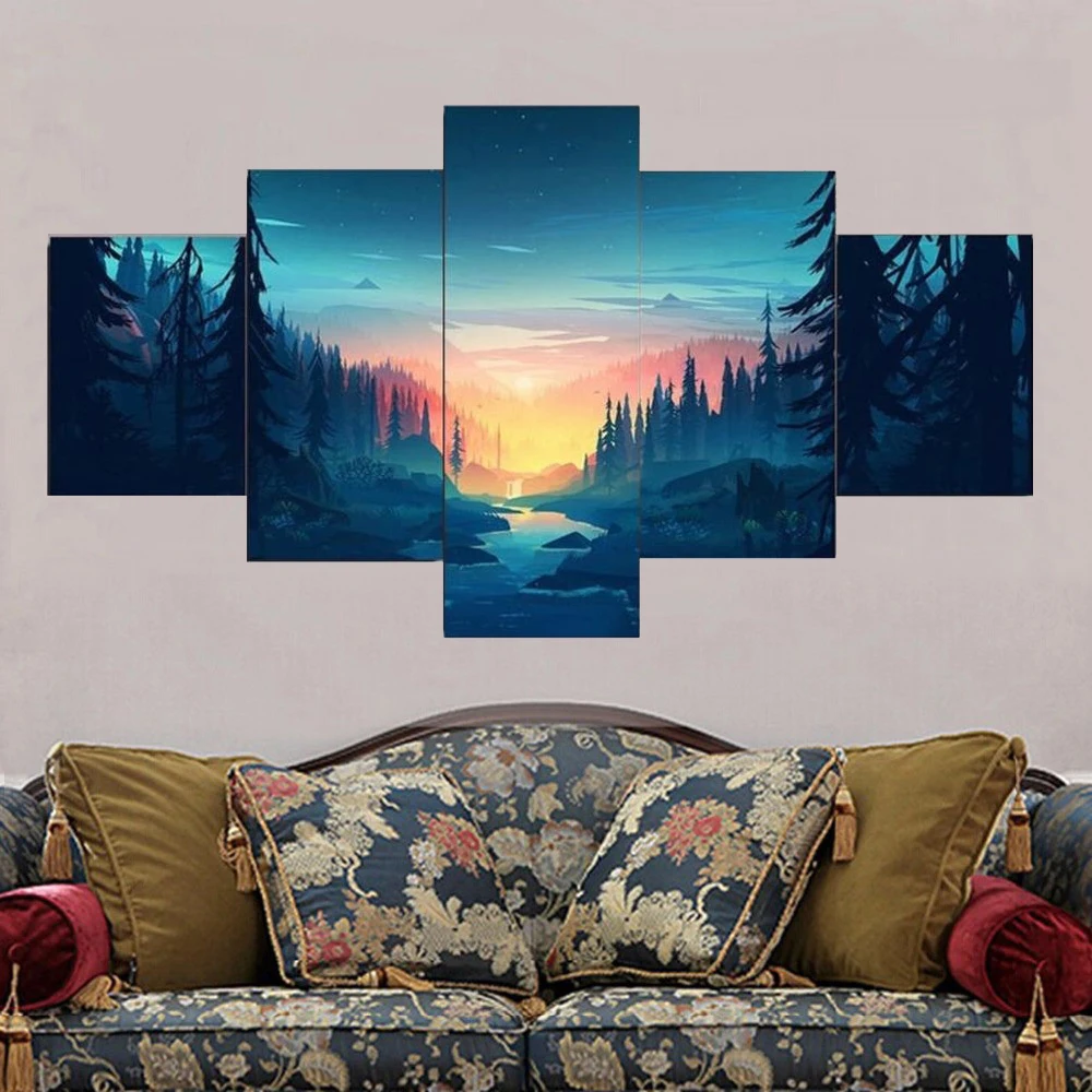 5 шт. настенное искусство на холсте, пейзаж, красочная картина маслом, гора, дикая природа, закат, современная домашняя Спальня Декоративные плакаты