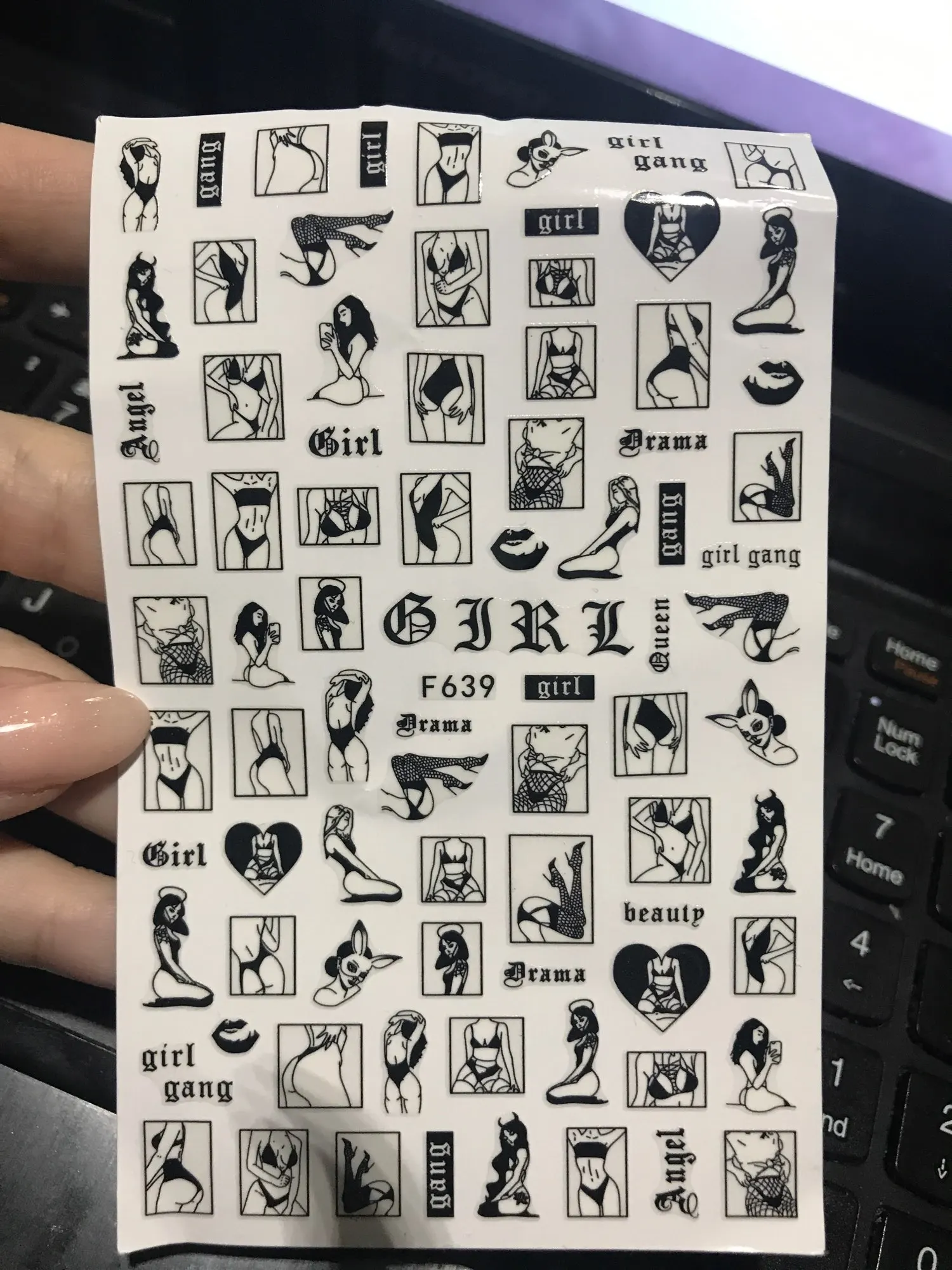2022 новый дизайн рождественские наклейки для ногтей Черный абстрактный олень Снеговик сексуальная леди дизайн сделай сам маникюр декоративные наклейки