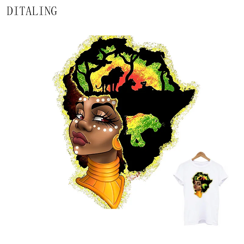 Красивые африканские женские термонаклейки на одежду, Термотрансфер...