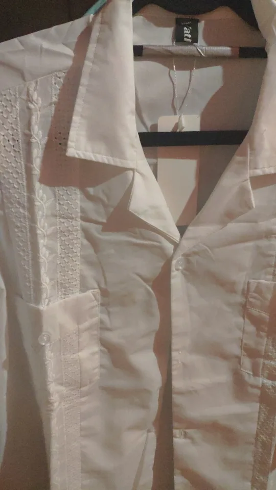 1. Материал: 80% полиэстер хлопок + 20% хлопок 2. Деликатная ручная Стирка (стирка в холодной воде) Советы: ткань легко застегивается, не прикасайтесь к острым предметам при ношении и стирке. 3. Дизайн: рубашка с несколькими карманами, Золотой классический костюм, модная вышитая рубашка, воротник в Кубинском стиле.