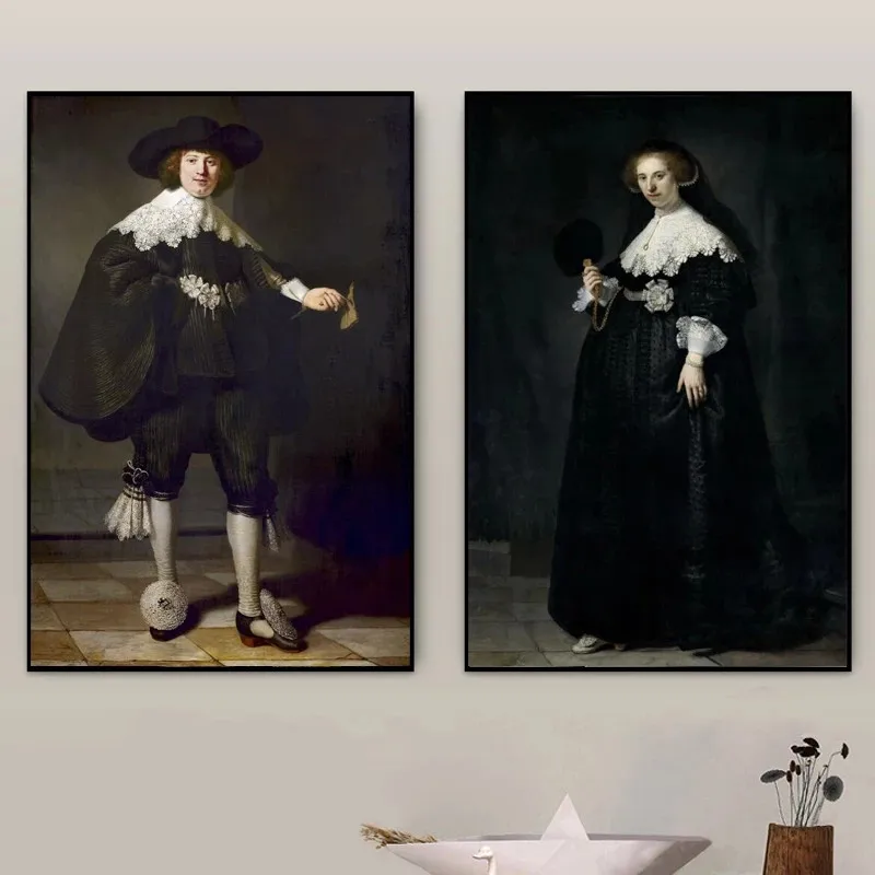 Marten Soolmans and Oopjen Coppit свадьба, сделано Рембрандтом Ван риджом, знаменитая живопись, печать на холсте, настенная живопись, портретные картины