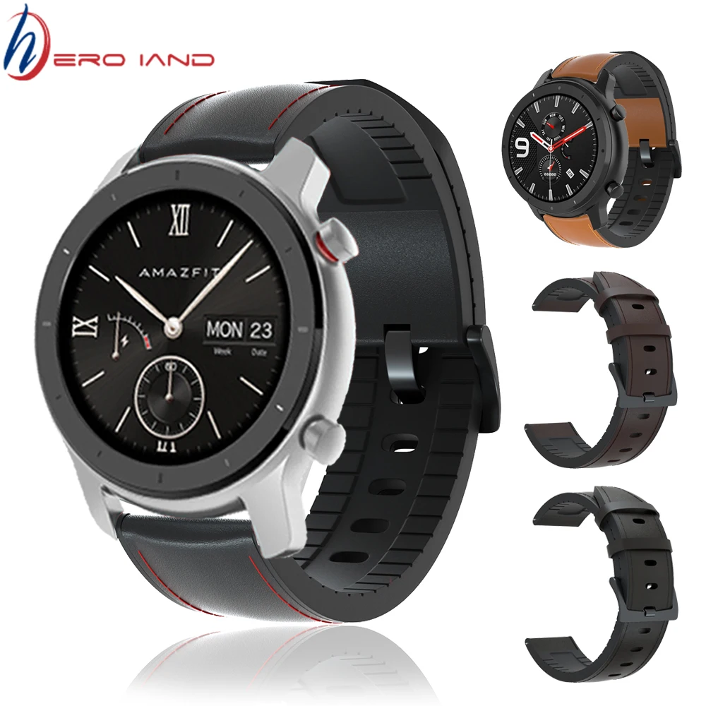 Ремешок из кожи и силикона для Xiaomi Amazfit GTR 42 47 мм, сменный...