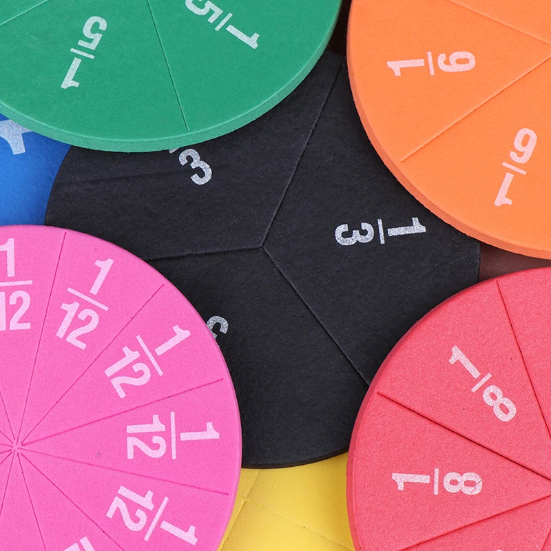 Точка пули:Круглая фракция содержит 1, 1/2, 1/3, 1/4, 1/5, 1/6, 1/8, 1/10 и 1/11, всего 51 часть магнитных сегментов с цифрами на ней.9 цветов, каждый цвет определяет разные доли.Помогите студентам визуализировать фракцию и учиться умножению и счету.Толстая Магнитная подложка, легко для обучающей демонстрации на белой доске или магнитной доске, а также для детей для самостоятельного управления.Идеально подходит для 2-5 классов.