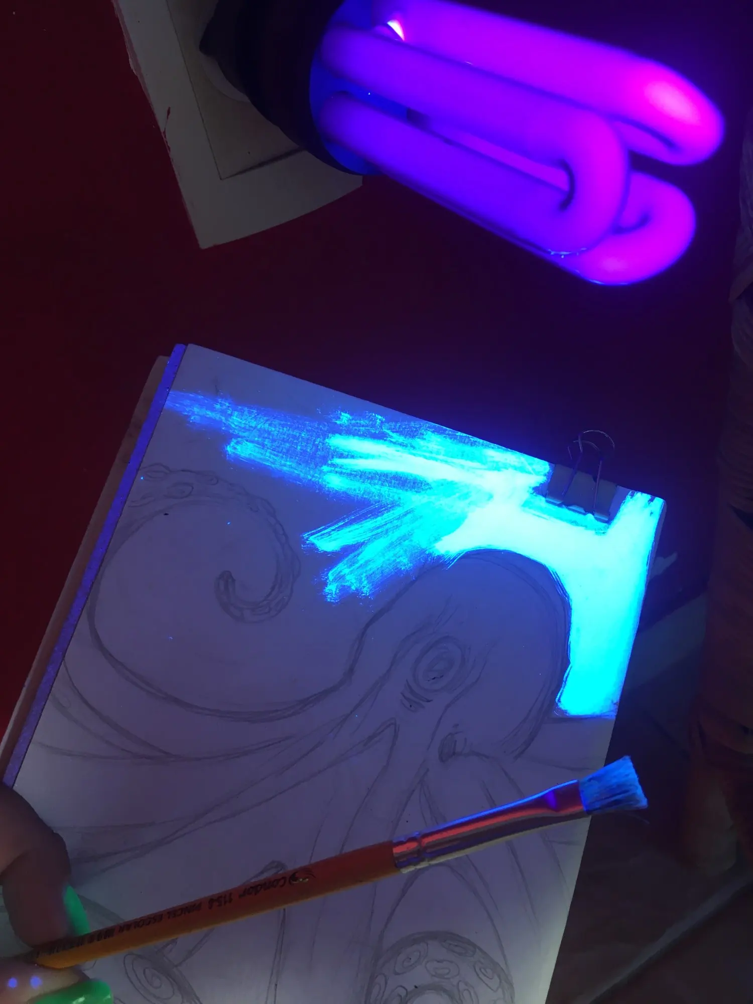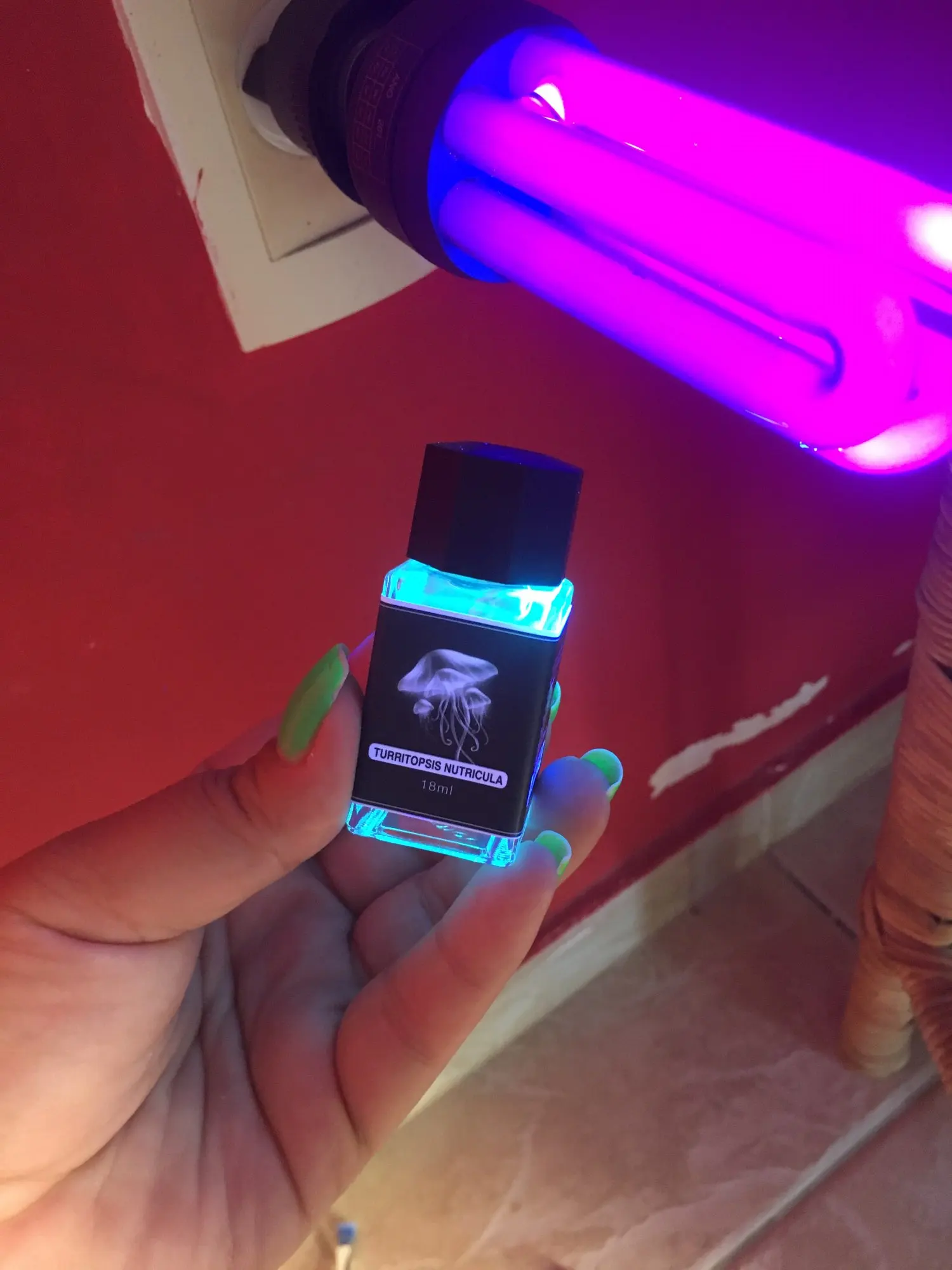 Чернила были упакованы сегодня безопасно и без повреждений. Он загорается в черном свете по желанию.