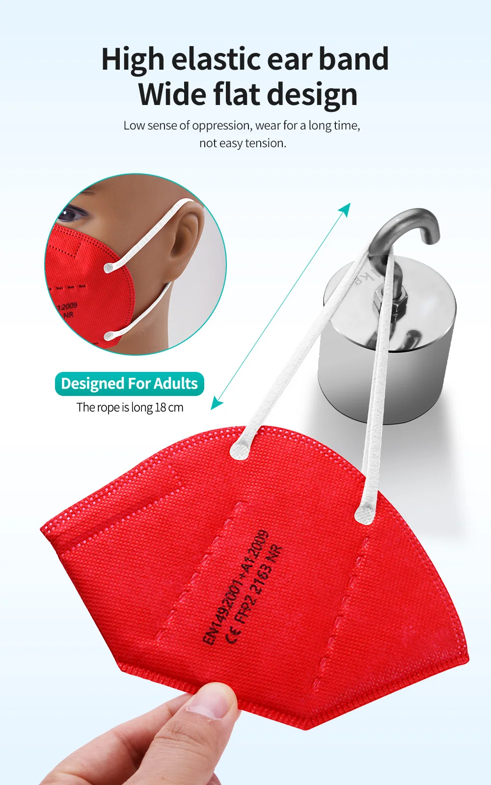 Защитная маска FFP2, 5 слоев, дышащая, красная, 5-100 шт.