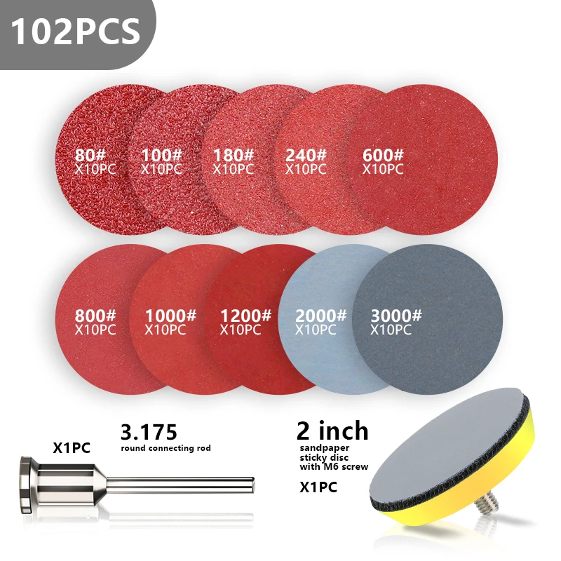 Наждачная бумага CMCP, 100 шт.компл., 2 дюйма, зернистость 80 до 3000, обратная Подушка, ручка диаметром 18 дюйма для полировальных инструментов, 1 шт.